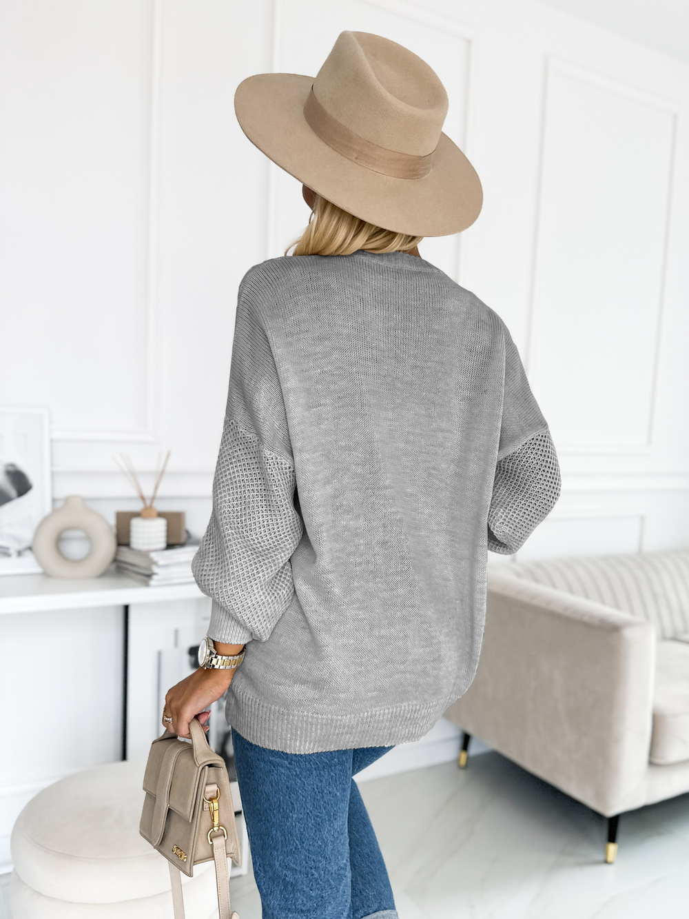 Fenomenalny, kobiecy sweterek z ozdobnym warkoczowym splotem po bokach i gładkim tyłem to idealny wybór na każdą okazję. Luźniejszy krój z okrągłym dekoltem i długimi rękawami zapewnia komfort oraz swobodę ruchów. Wykonany z miękkiego, elastycznego materiału, pięknie dopasowuje się do sylwetki i stanowi doskonałą bazę zarówno do eleganckich, jak i codziennych stylizacji.