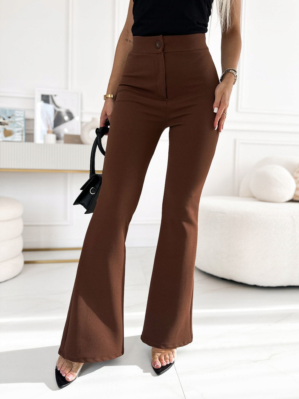 Najmodniejsze w tym sezonie, stylowe, kobiece spodnie dzwony. Super elastyczne i niesamowicie wygodne. Wysoki stan, zapinane na zamek oraz guzik, zapewnia komfort i idealne dopasowanie. Wykonane z miękkiego, mocno elastycznego materiału, który naciąga się i dopasowuje do ciała, nie krępując ruchów. Spodnie prezentują się po prostu idealnie, łącząc elegancję i wygodę. Idealne na różne okazje, zarówno w zestawieniu eleganckim, jak i casualowym.