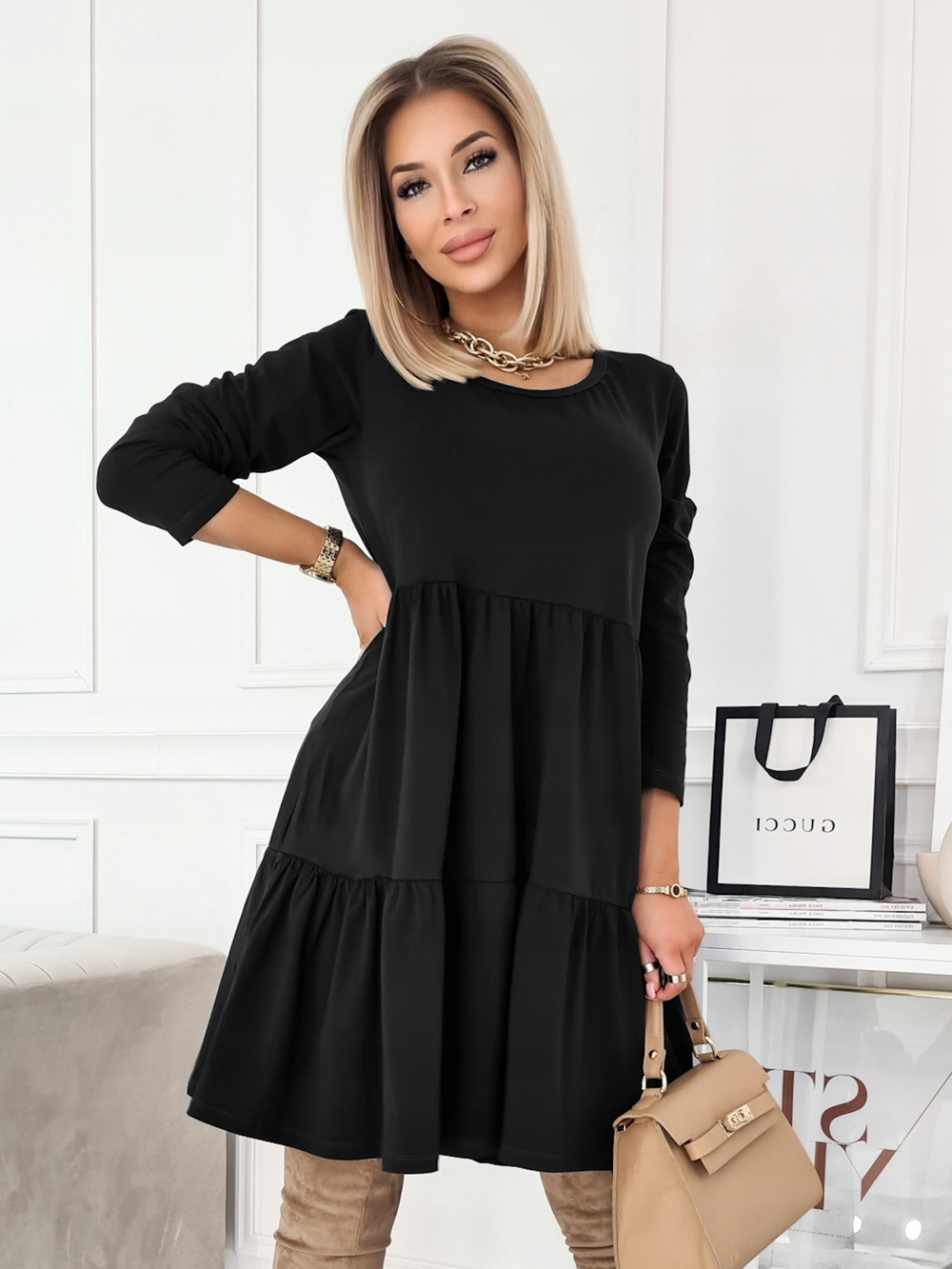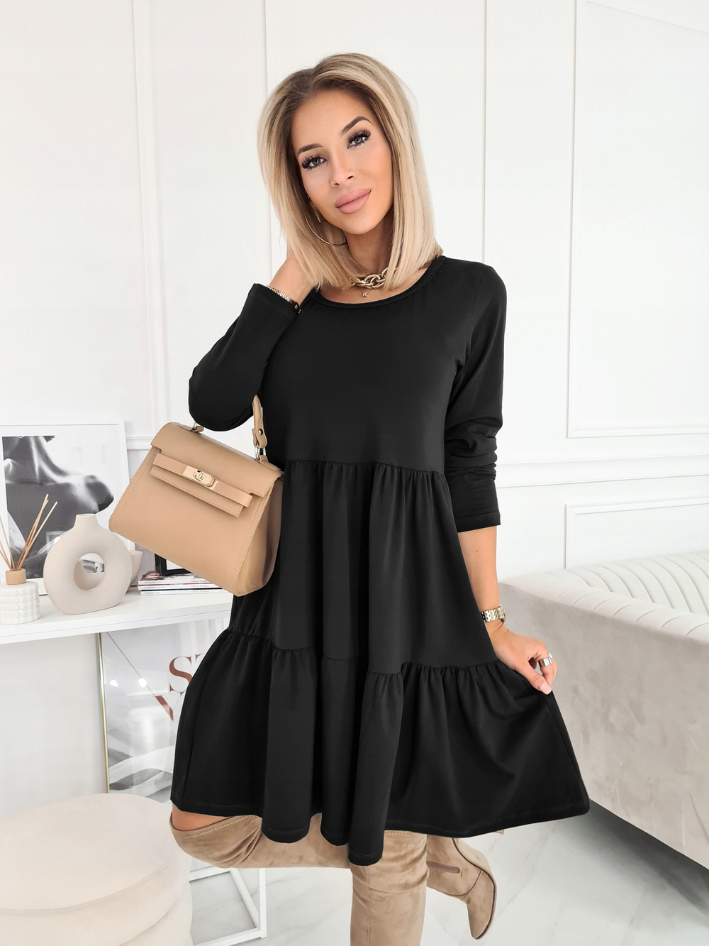 Bawełniana sukienka o trapezowym kroju zapewnia wygodę i swobodę ruchów. Posiada klasyczny, okrągły dekolt dzięki czemu świetnie sprawdzi się na co dzień. Naturalny materiał sprawia, że nosi się ją wyjątkowo komfortowo.