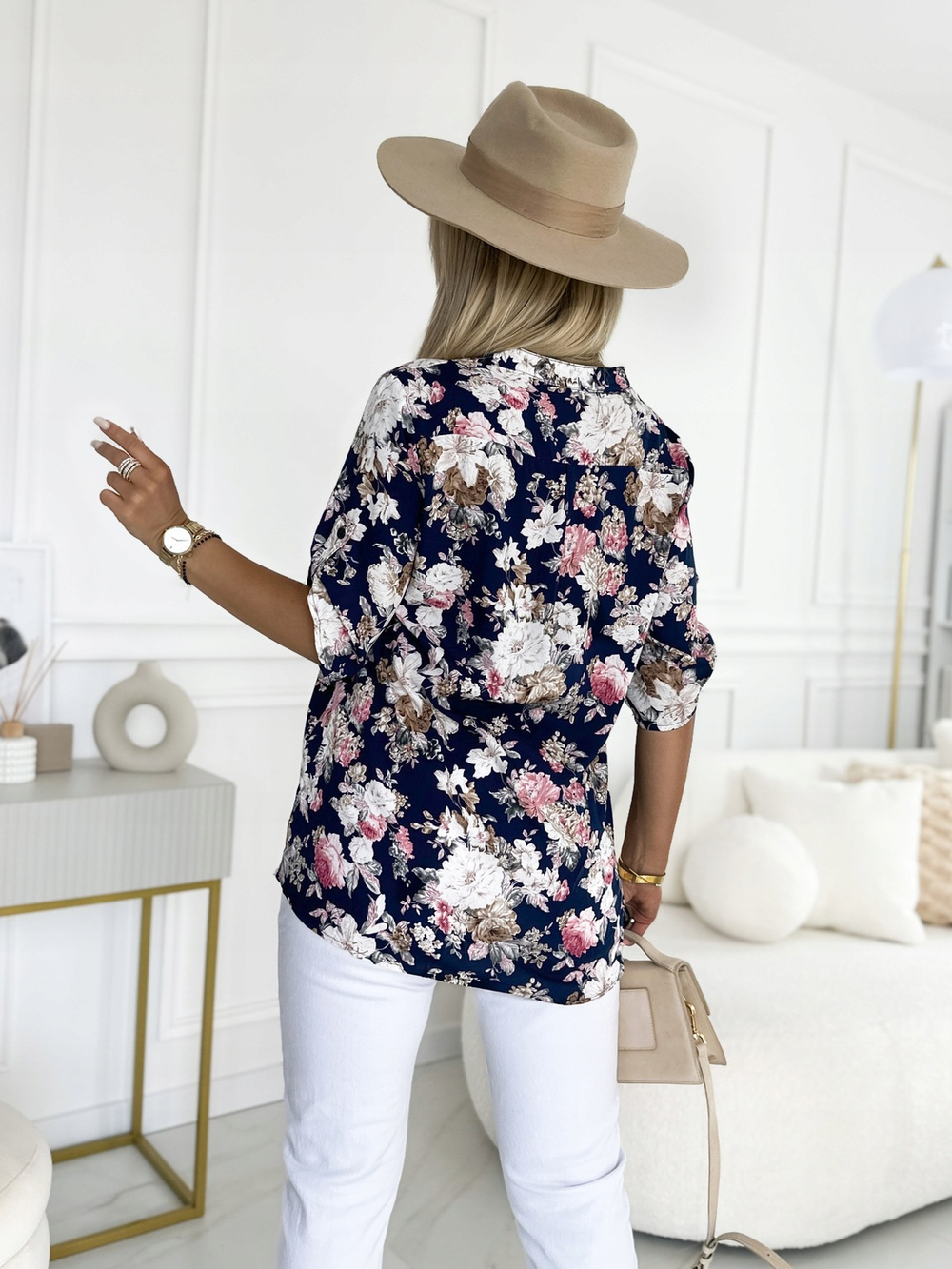 Buzka z delikatnym, kwiatowym wzorem zachwyca kobiecym stylem i wygodą. Luźniejszy, przedłużany fason oraz rękawy 3/4 podpinane na guzik sprawiają, że jest praktyczna i elegancka. Wykonana z lekkiej, bawełnianej tkaniny – idealna zarówno do pracy, jak i na co dzień.