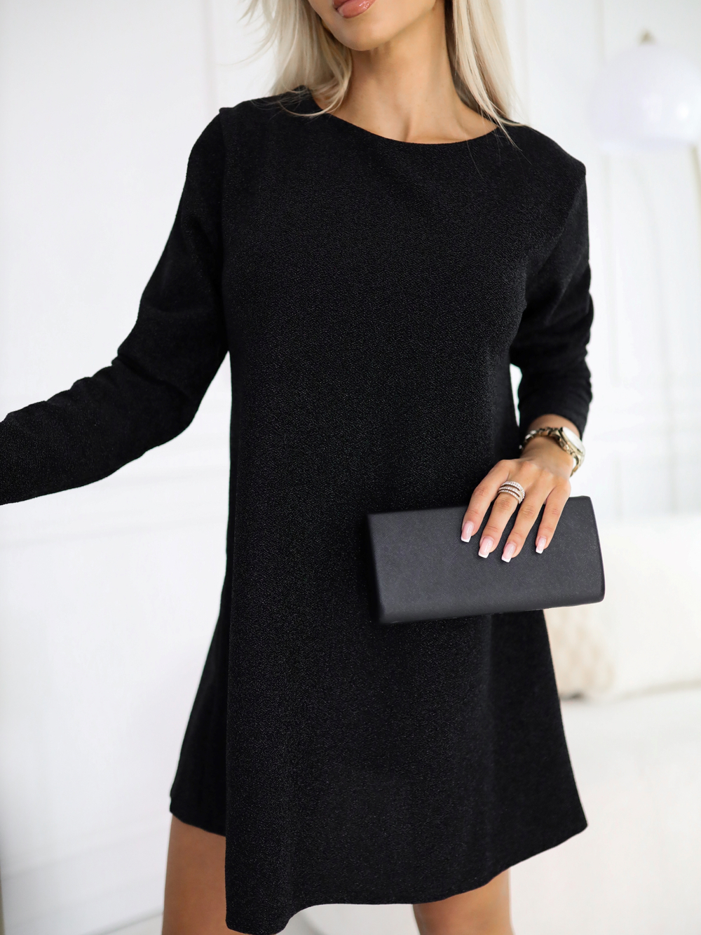 Błyszcząca sukienka trapezowa z długim rękawem i okrągłym dekoltem to idealny wybór na wyjątkowe okazje. Jej krótki fason podkreśla nogi, dodając stylizacji lekkości i elegancji. Wykonana z materiału o subtelnym połysku, przyciąga wzrok i wyróżnia się w towarzystwie. To sukienka, która doskonale sprawdzi się na imprezy, wieczorne wyjścia i wszędzie tam, gdzie chcesz poczuć się wyjątkowo.