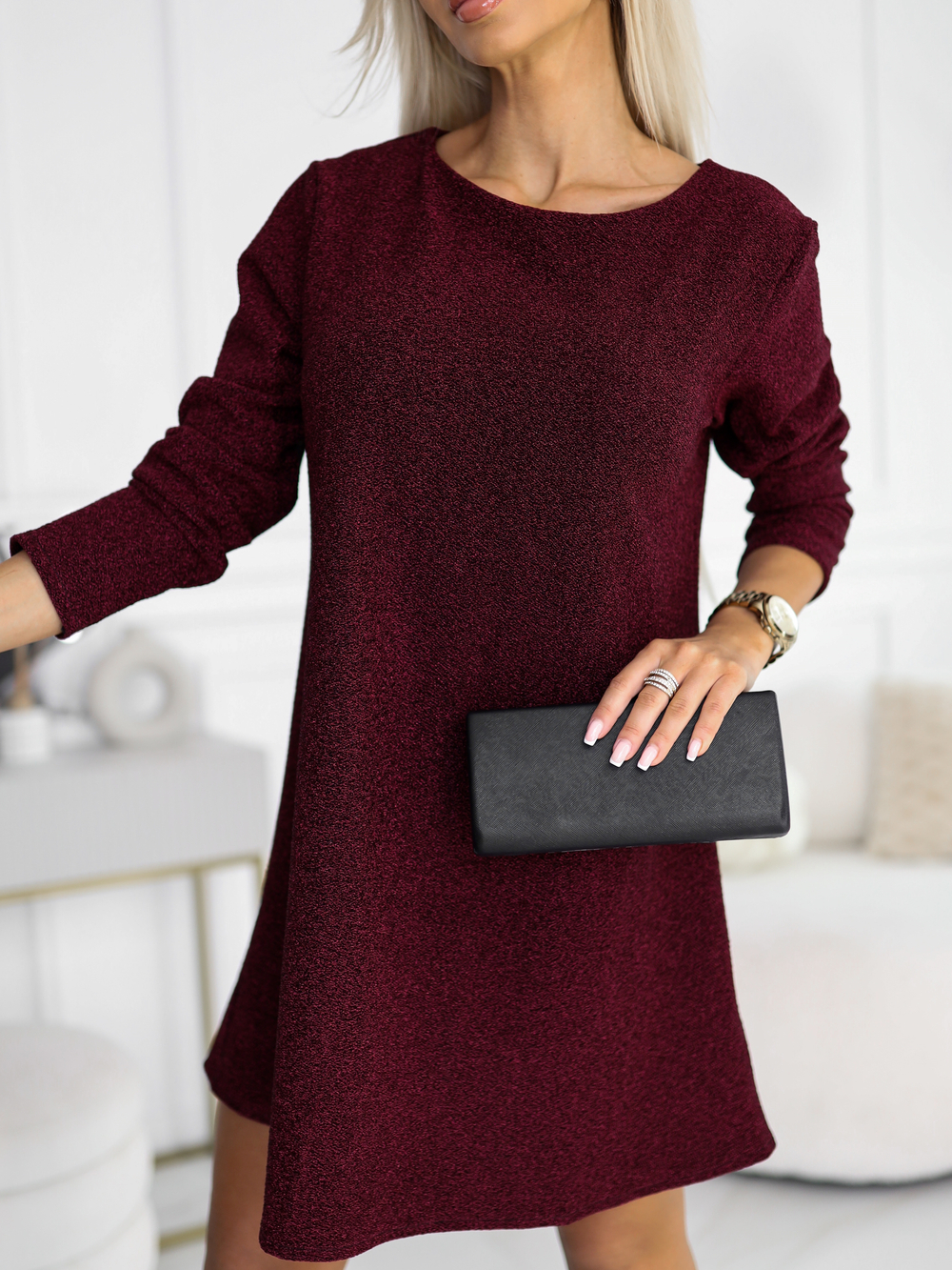 Błyszcząca sukienka trapezowa z długim rękawem i okrągłym dekoltem to idealny wybór na wyjątkowe okazje. Jej krótki fason podkreśla nogi, dodając stylizacji lekkości i elegancji. Wykonana z materiału o subtelnym połysku, przyciąga wzrok i wyróżnia się w towarzystwie. To sukienka, która doskonale sprawdzi się na imprezy, wieczorne wyjścia i wszędzie tam, gdzie chcesz poczuć się wyjątkowo.