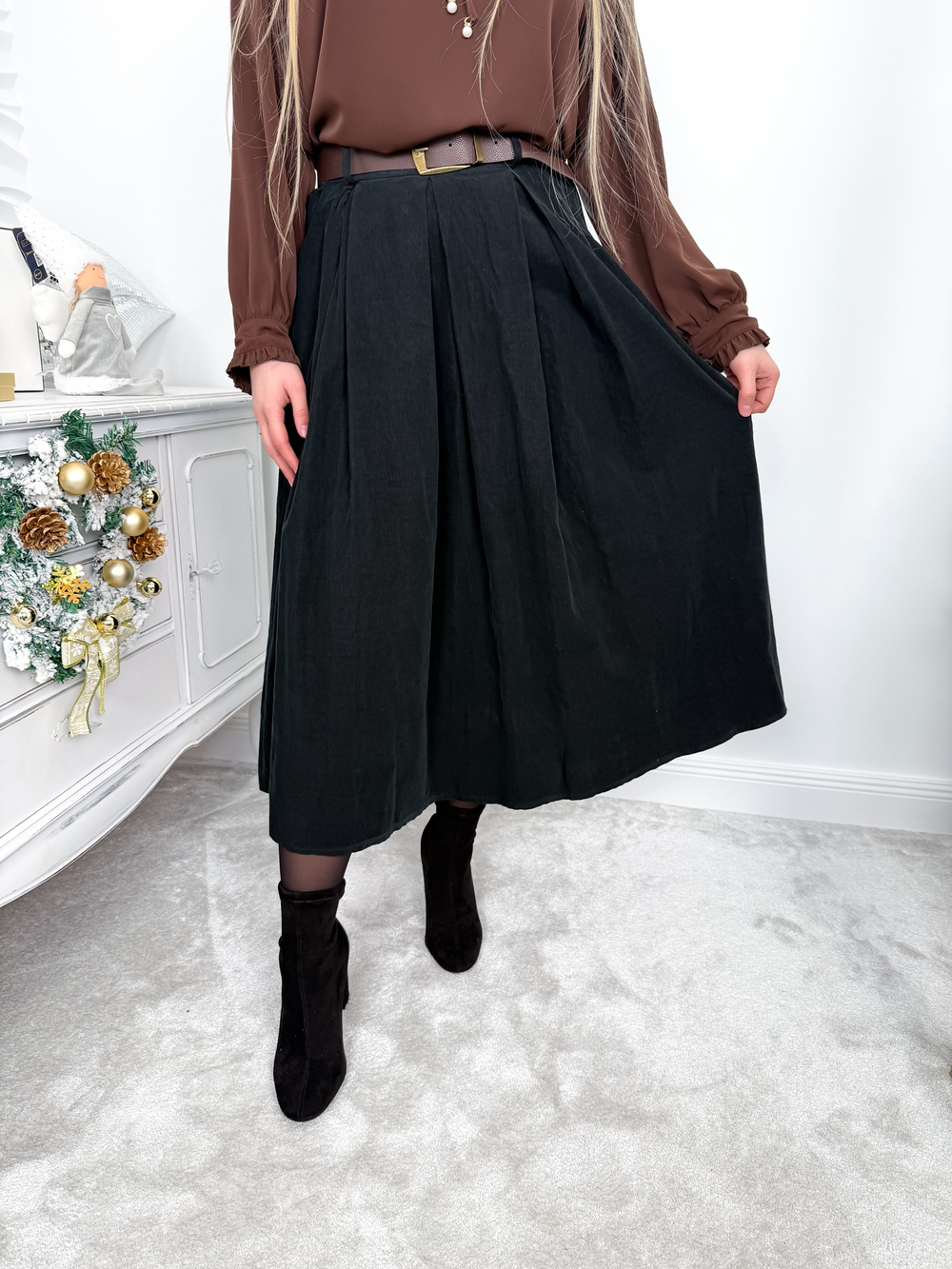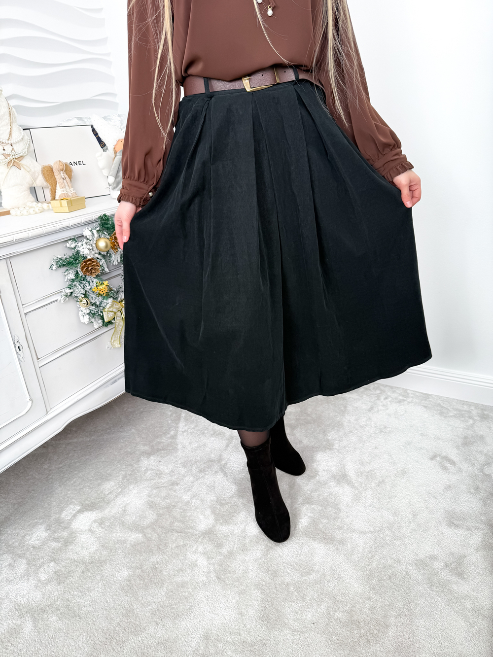 Czarna rozkloszowana spódnica sztruksowa