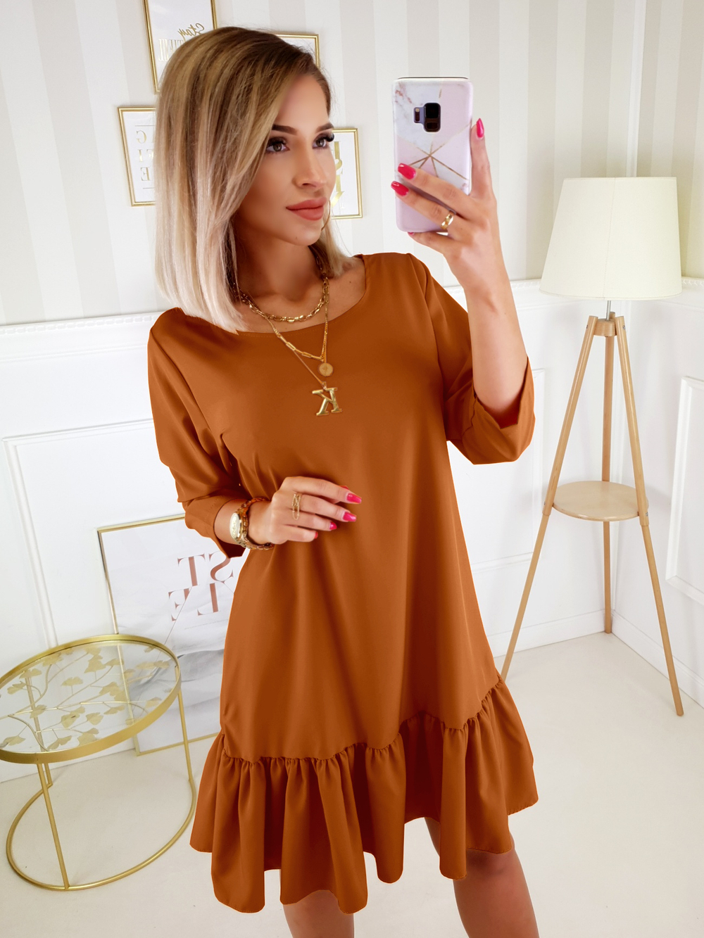 Stylowa sukienka z falbaną na dole to doskonały wybór dla kobiet ceniących wygodę i elegancję. Luźny fason i okrągły dekolt w połączeniu z rękawem 3/4 sprawiają, że jest to idealna propozycja na każdą okazję. Sukienka została wykonana z miękkiego, lekkiego materiału, który zapewnia komfort noszenia przez cały dzień. Dostępna w kilku modnych kolorach, świetnie dopasuje się do różnych stylizacji i podkreśli Twój unikalny styl.