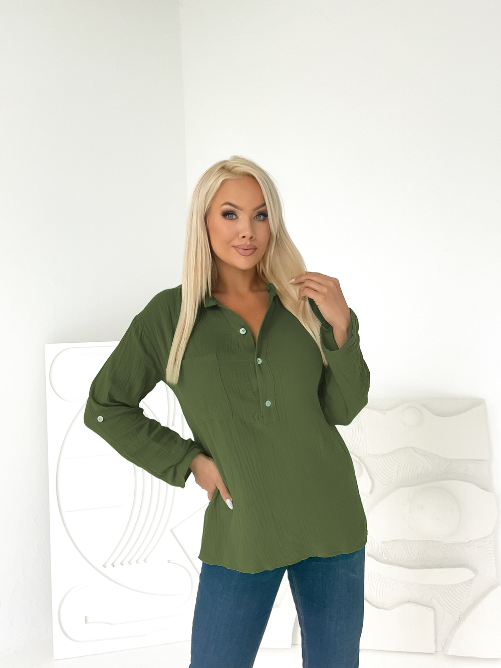 Khaki muślinowa bluzka z guzikami Kora