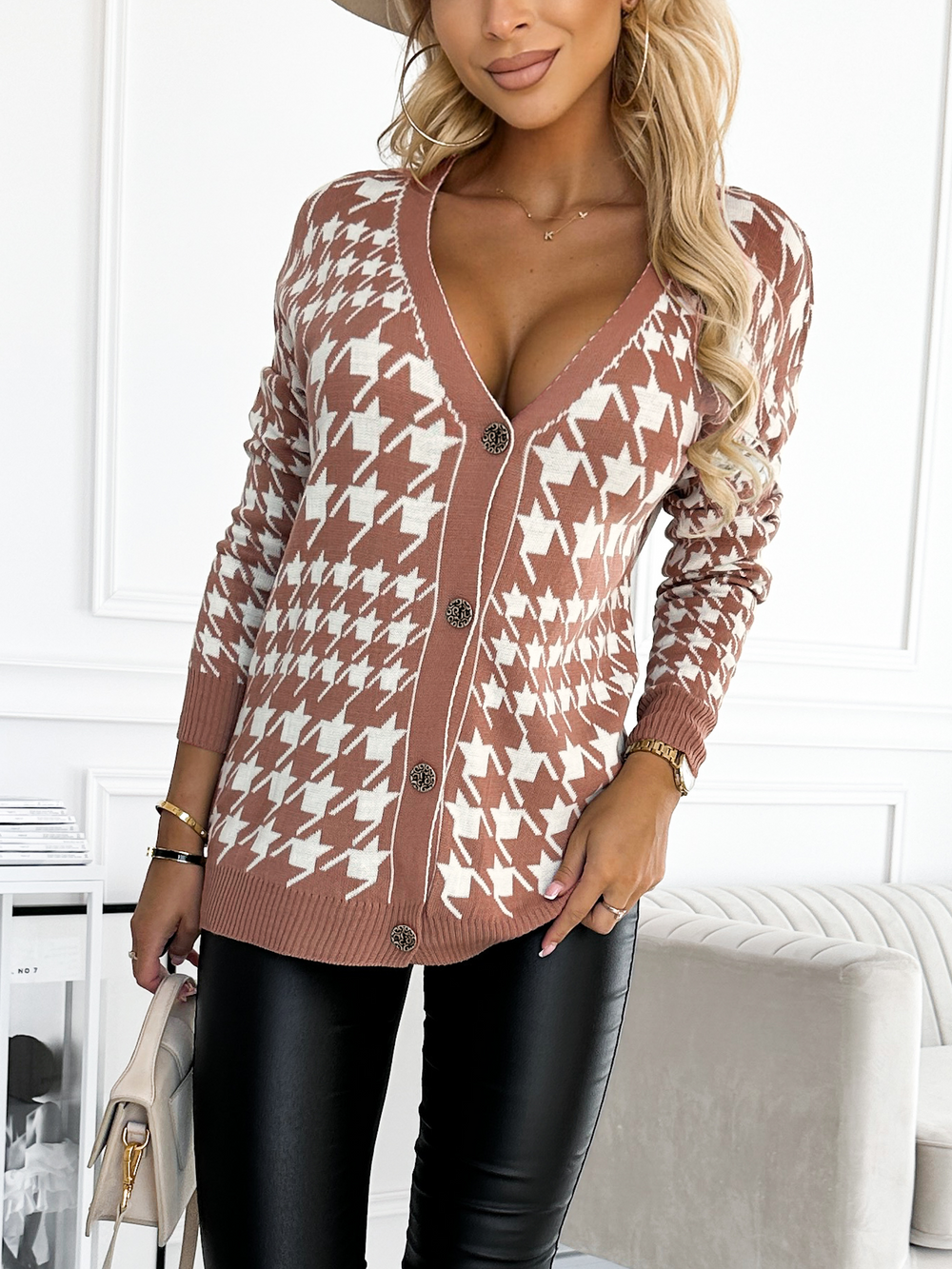 Zjawiskowy kardigan zapinany na guziki w modny wzór pepitki. Wygodny i klasyczny, a jednocześnie niezwykle uniwersalny – idealny na każdą okazję.