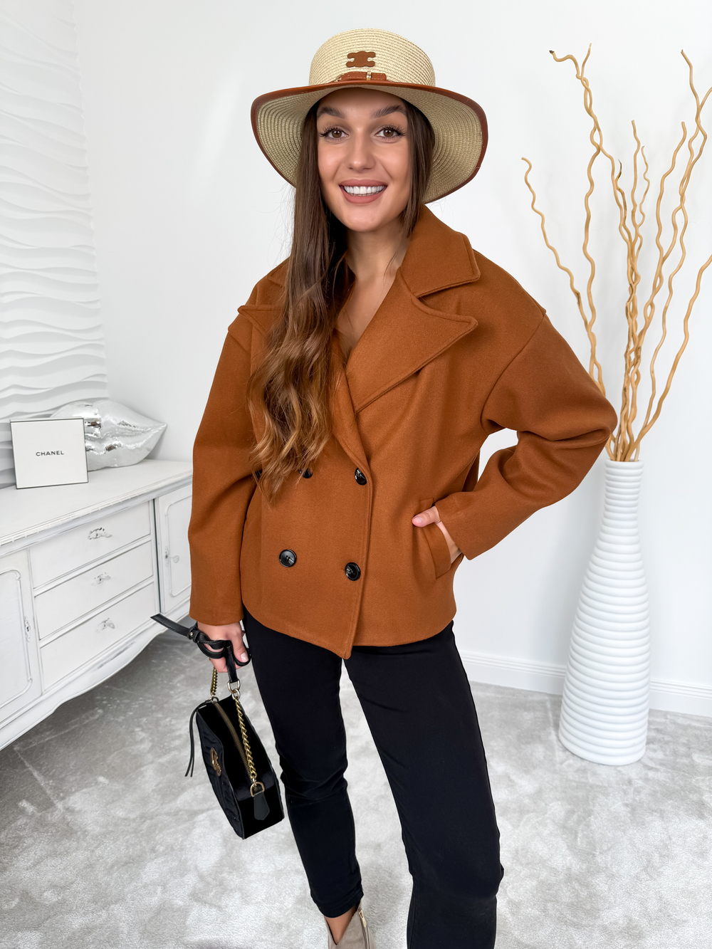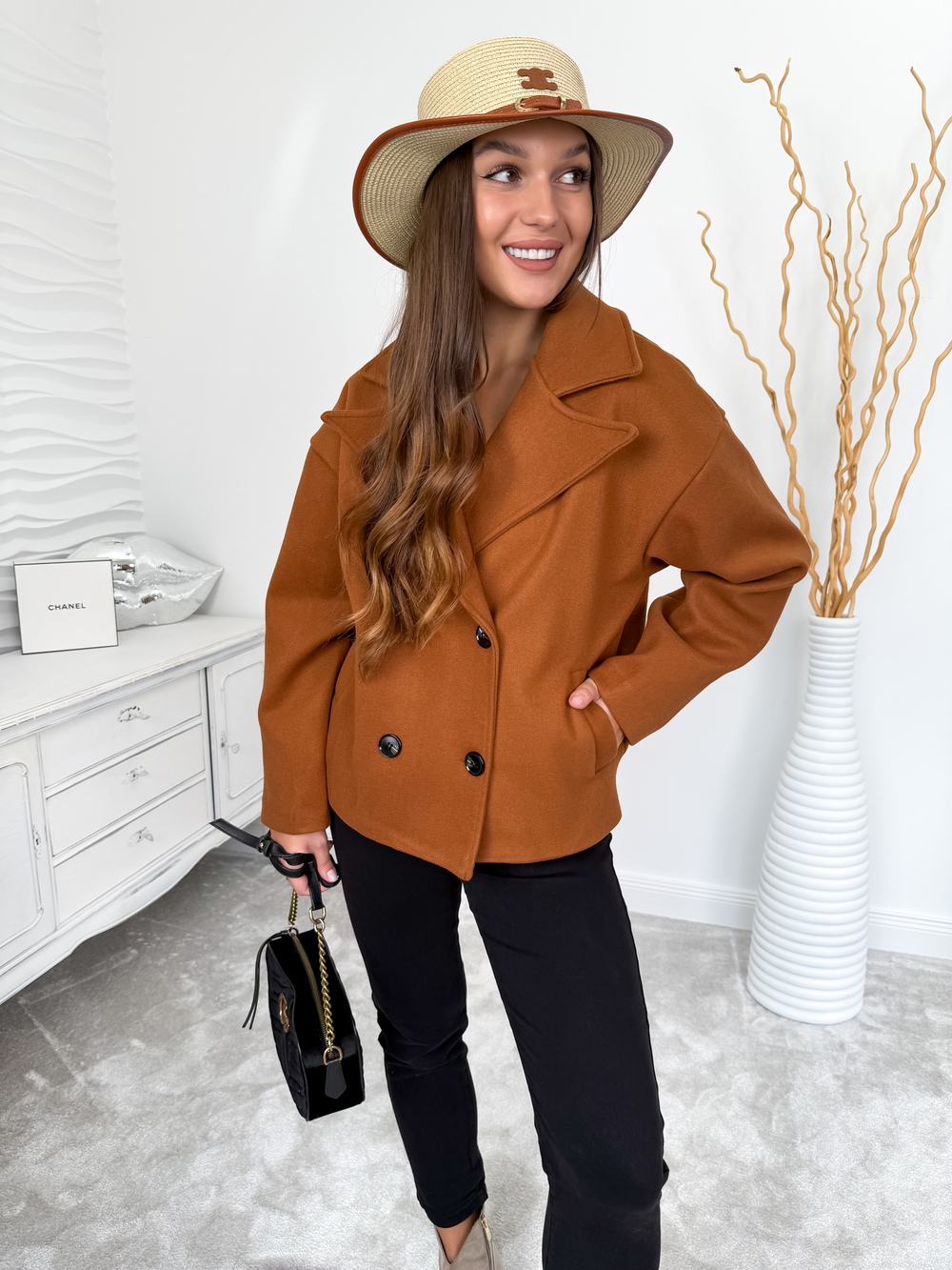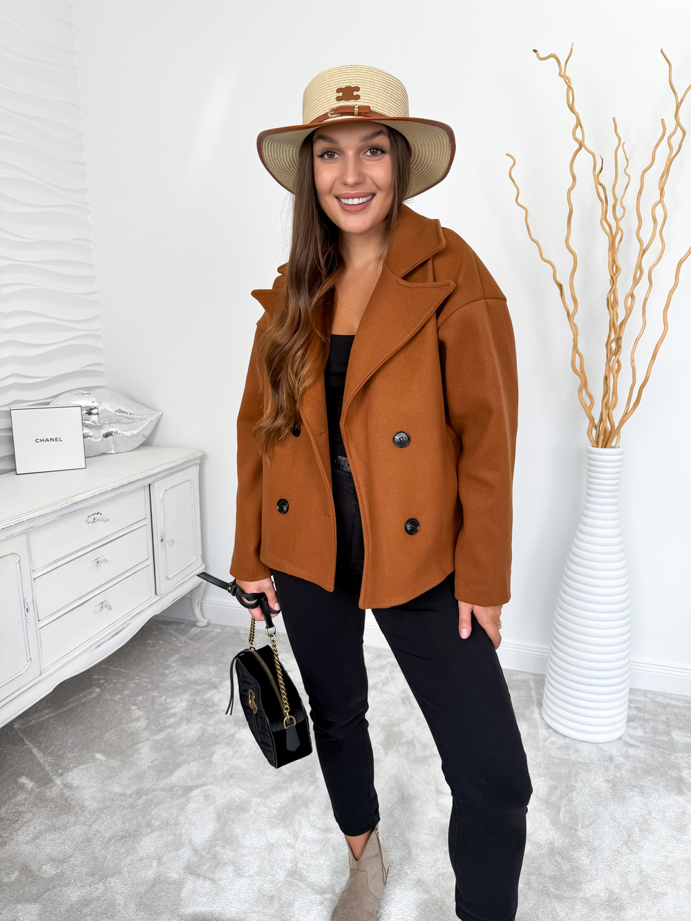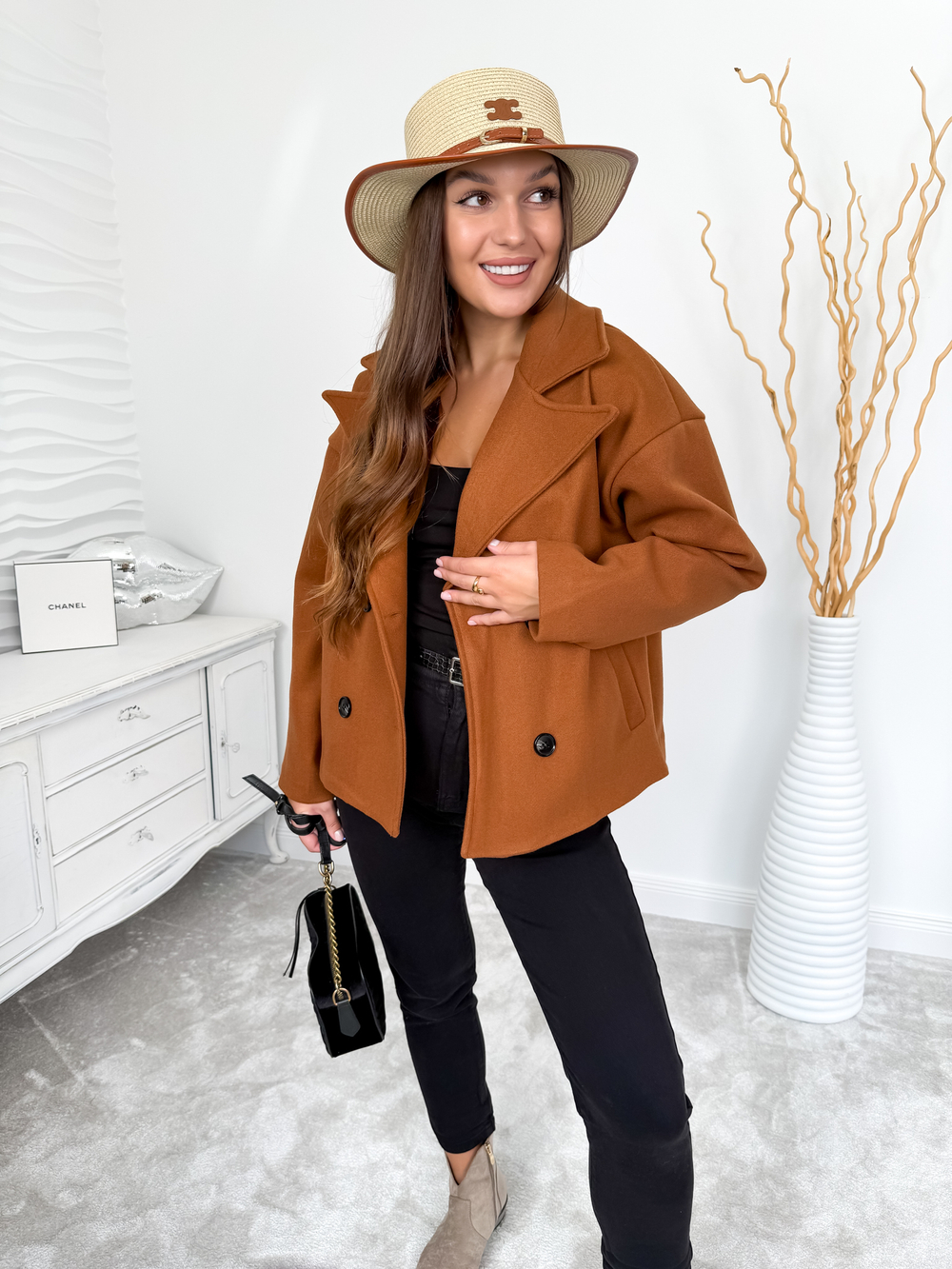 Krótki płaszcz do bioder, zapinany na guziki, z elegancką podszewką i szerokim, wywijanym kołnierzem. Stylowy i praktyczny, idealnie sprawdzi się jako jesienny, przejściowy model. Klasyczny krój nadaje mu ponadczasowego charakteru.