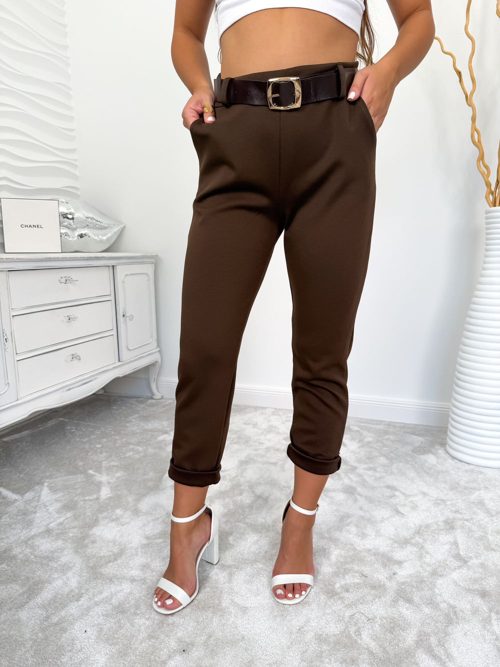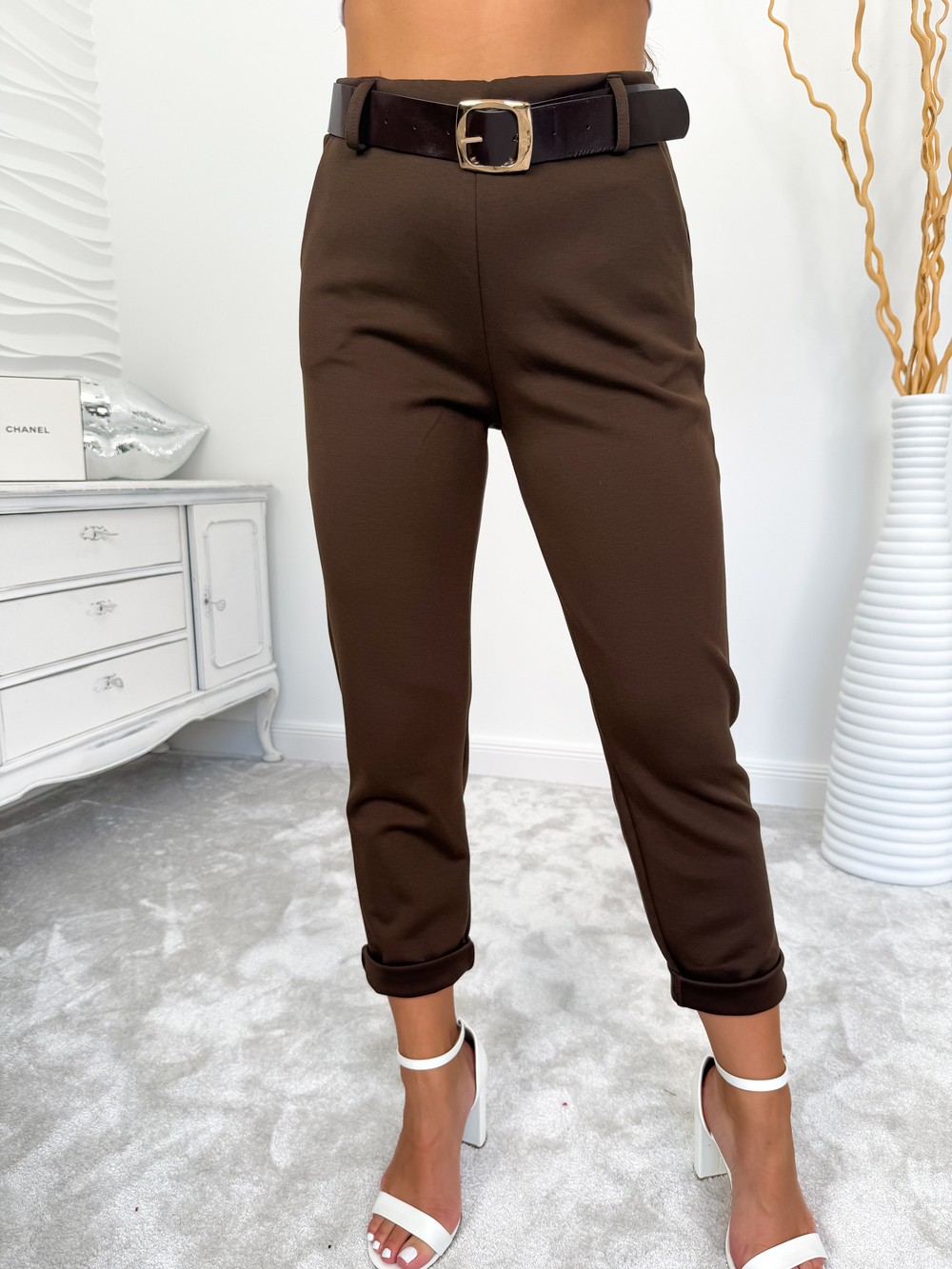 Miękkie i elastyczne spodnie typu „masełko”, które zapewniają maksymalny komfort noszenia. W zestawie pasek oraz możliwość podwinięcia nogawki, co dodaje im uniwersalności. Wygodne i stylowe – idealne zarówno na co dzień, jak i do eleganckich stylizacji.