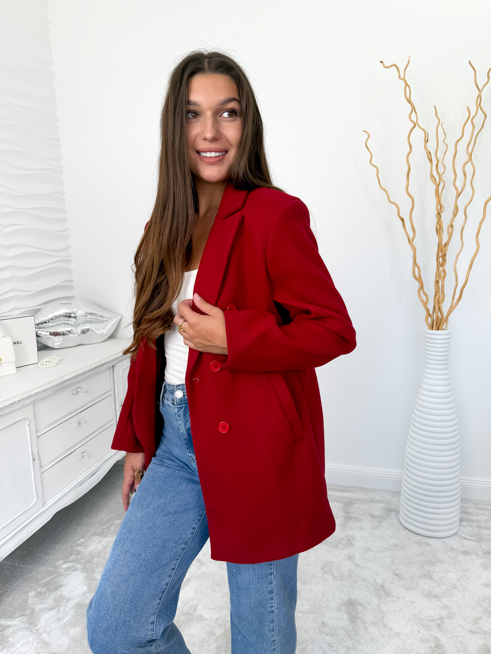 Klasyczny, dwurzędowy płaszcz o długości do połowy uda. Posiada dwie kieszenie, elegancką podszewkę i ponadczasowy fason. Idealny wybór na chłodniejsze dni i eleganckie stylizacje.