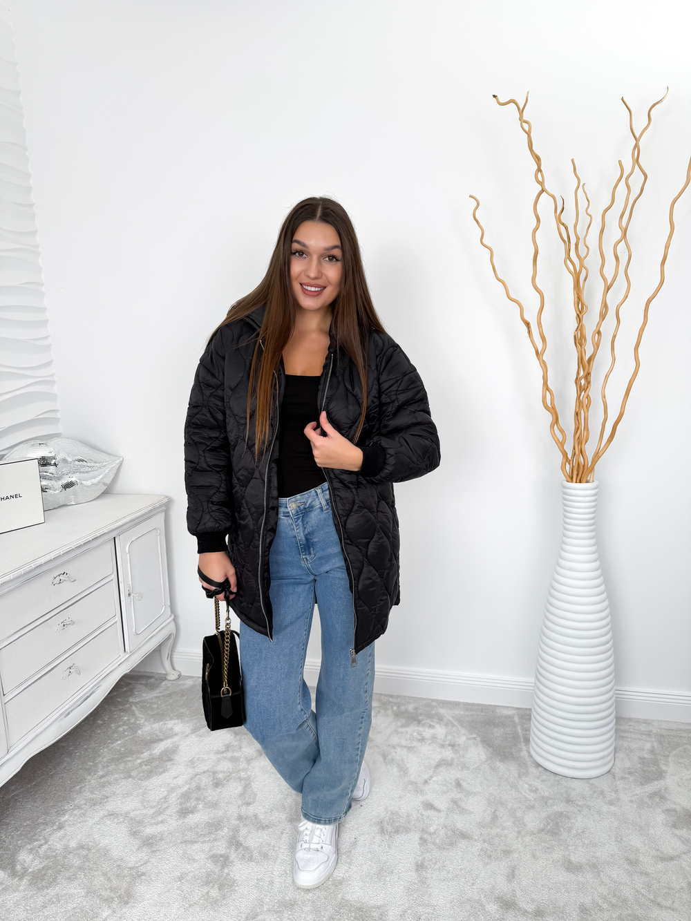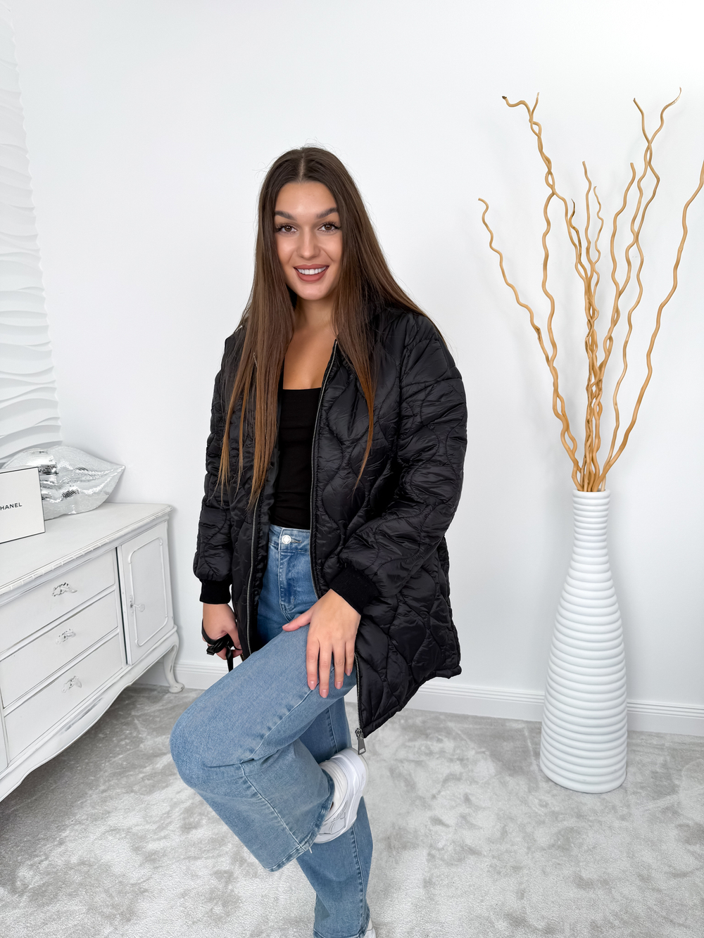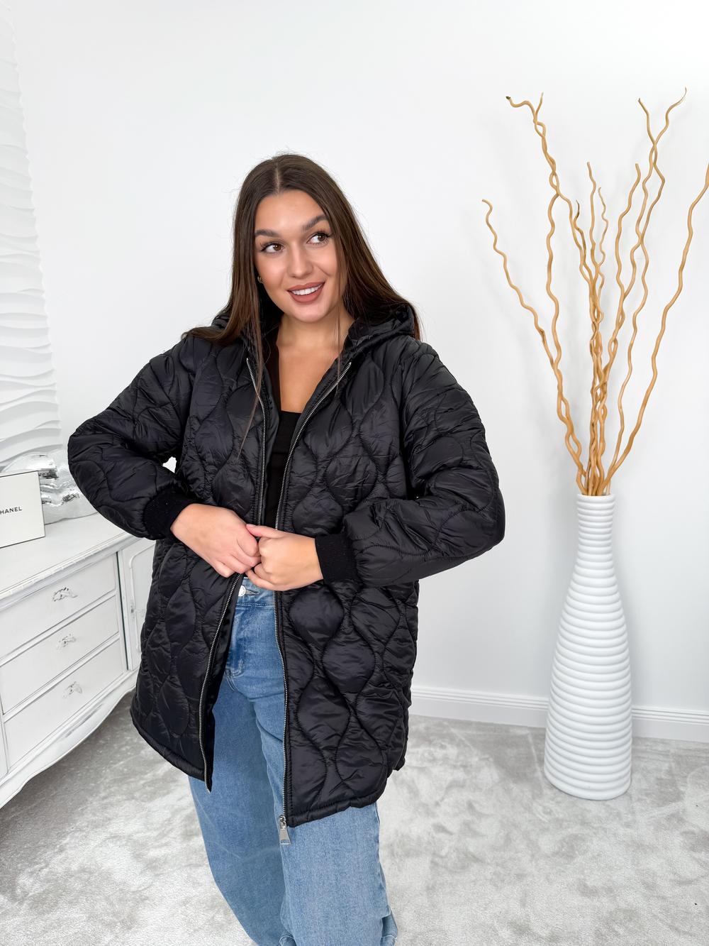Stylowa damska kurtka zimowa z delikatnymi przeszyciami łączy modny wygląd z funkcjonalnością. Posiada praktyczny kaptur, lekko przedłużany tył i ściągacze w rękawach, które chronią przed chłodem. Zapinana na zamek, dostępna w wielu kolorach – idealna na zimowe dni w miejskim stylu.
