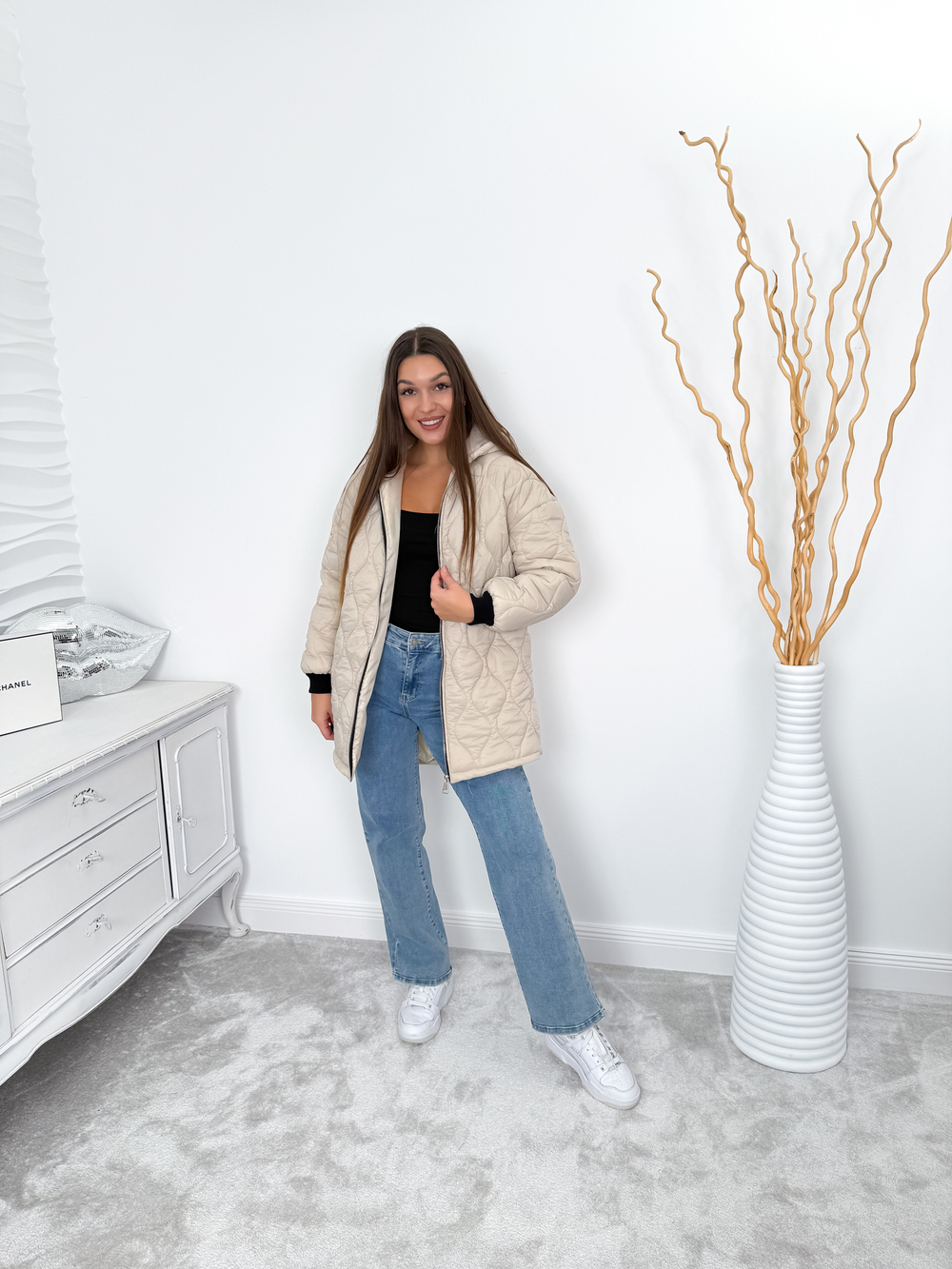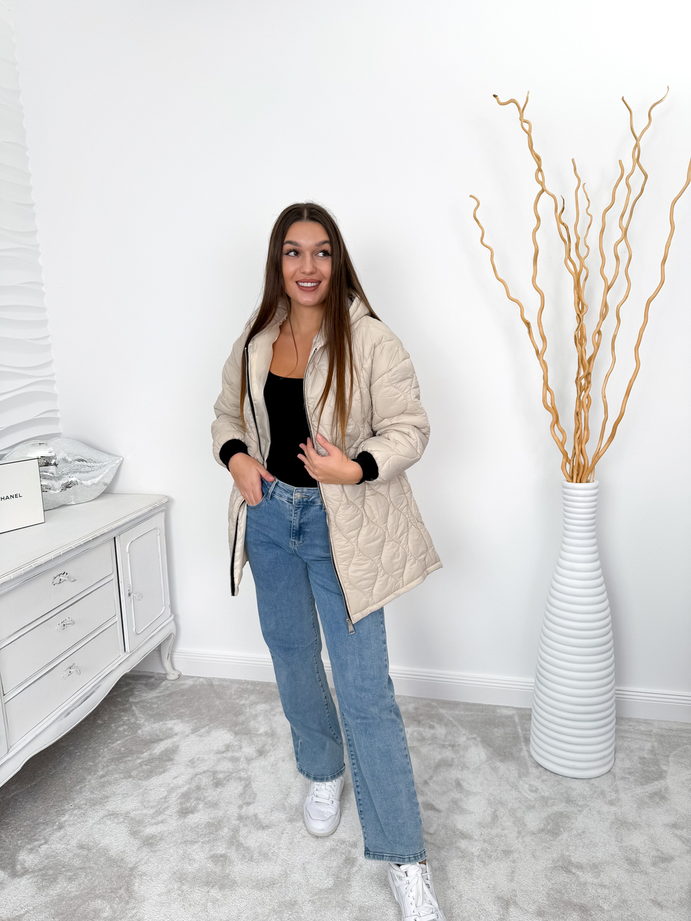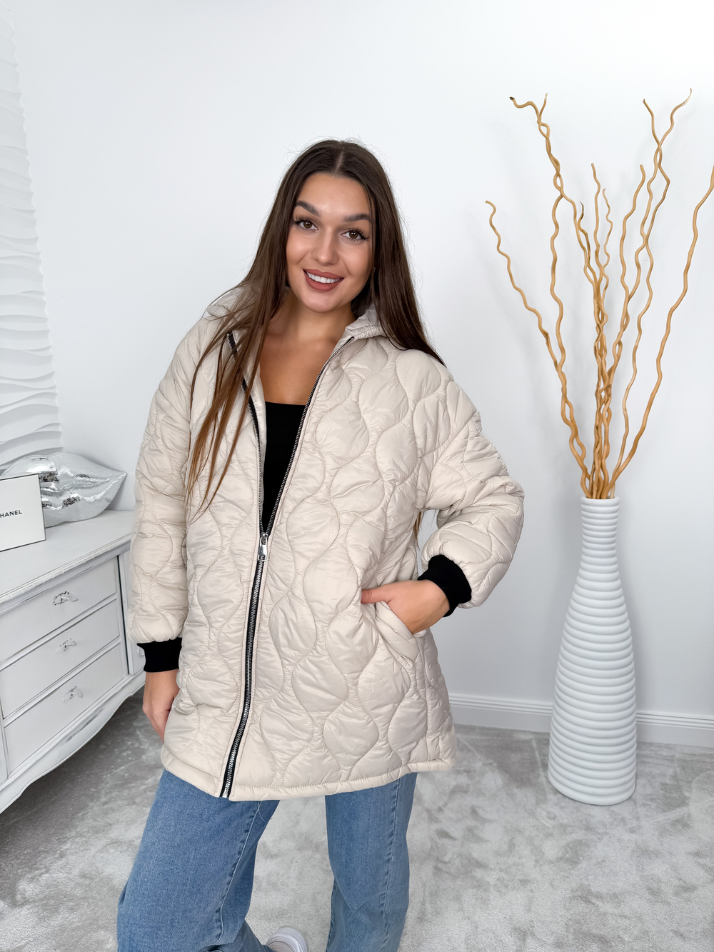 Stylowa damska kurtka zimowa z delikatnymi przeszyciami łączy modny wygląd z funkcjonalnością. Posiada praktyczny kaptur, lekko przedłużany tył i ściągacze w rękawach, które chronią przed chłodem. Zapinana na zamek, dostępna w wielu kolorach – idealna na zimowe dni w miejskim stylu.