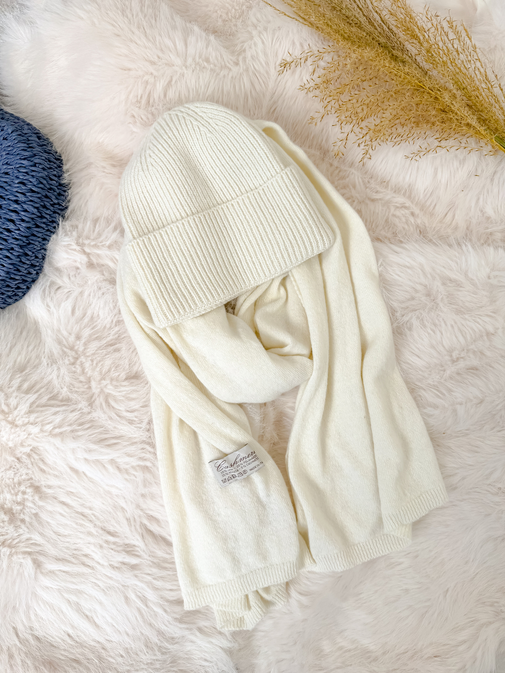 Miękki i wygodny komplet obejmuje prążkowaną czapkę oraz gładki, długi i szeroki szalik. Idealny na chłodne dni, zapewnia ciepło i komfort. Stylowy zestaw do codziennych stylizacji.