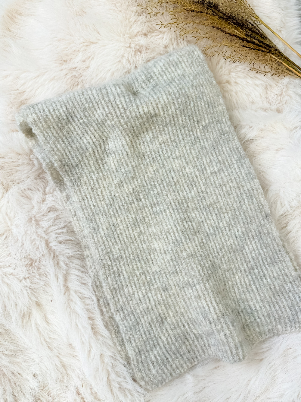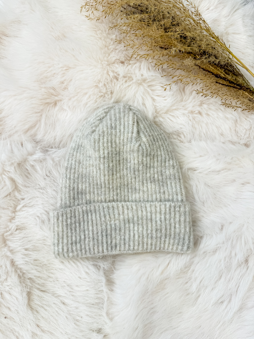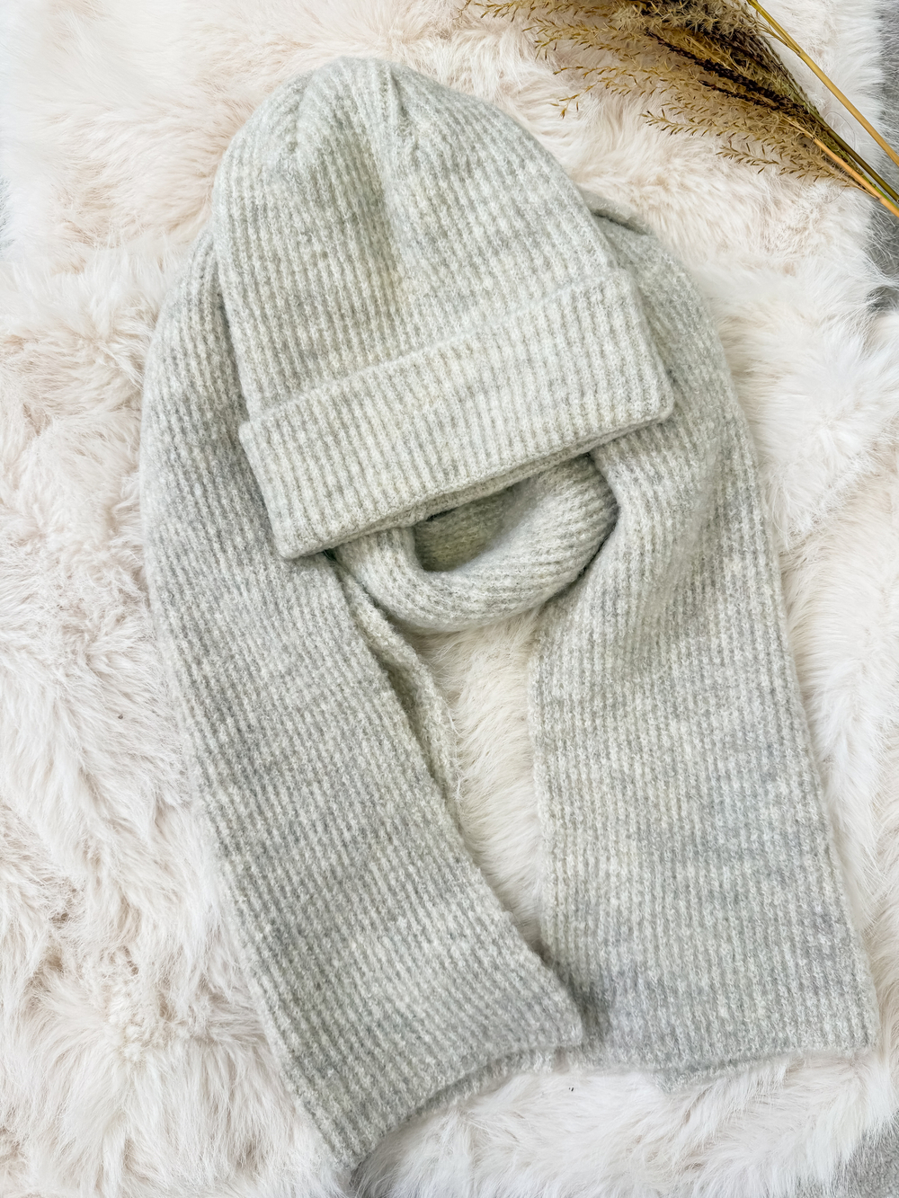 Szaro-beżowy komplet moher i wełna czapka + szalik