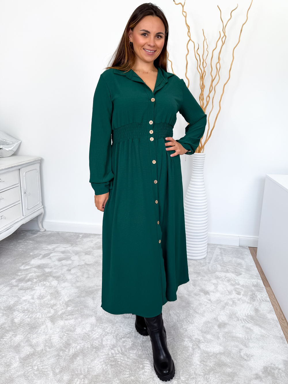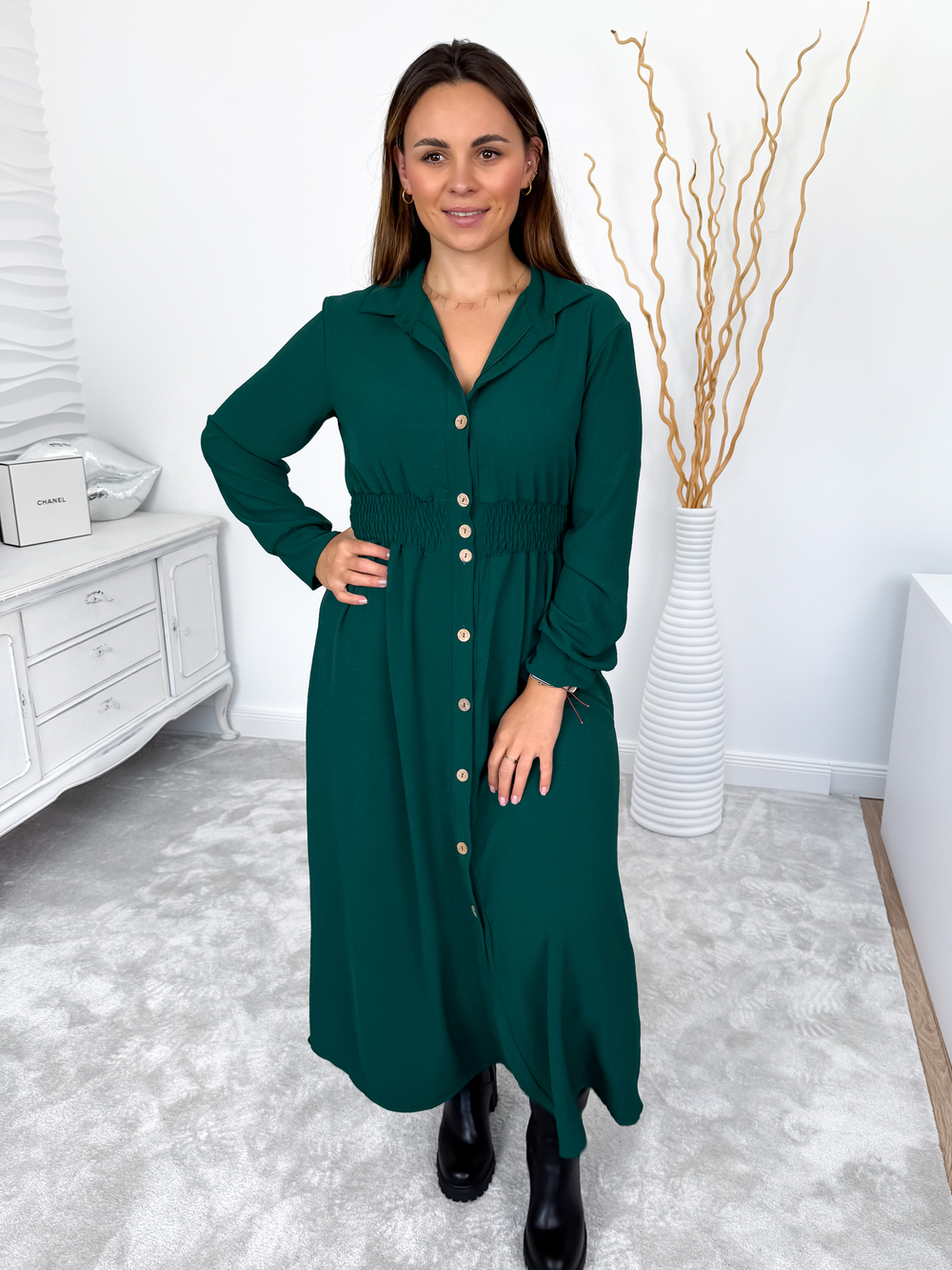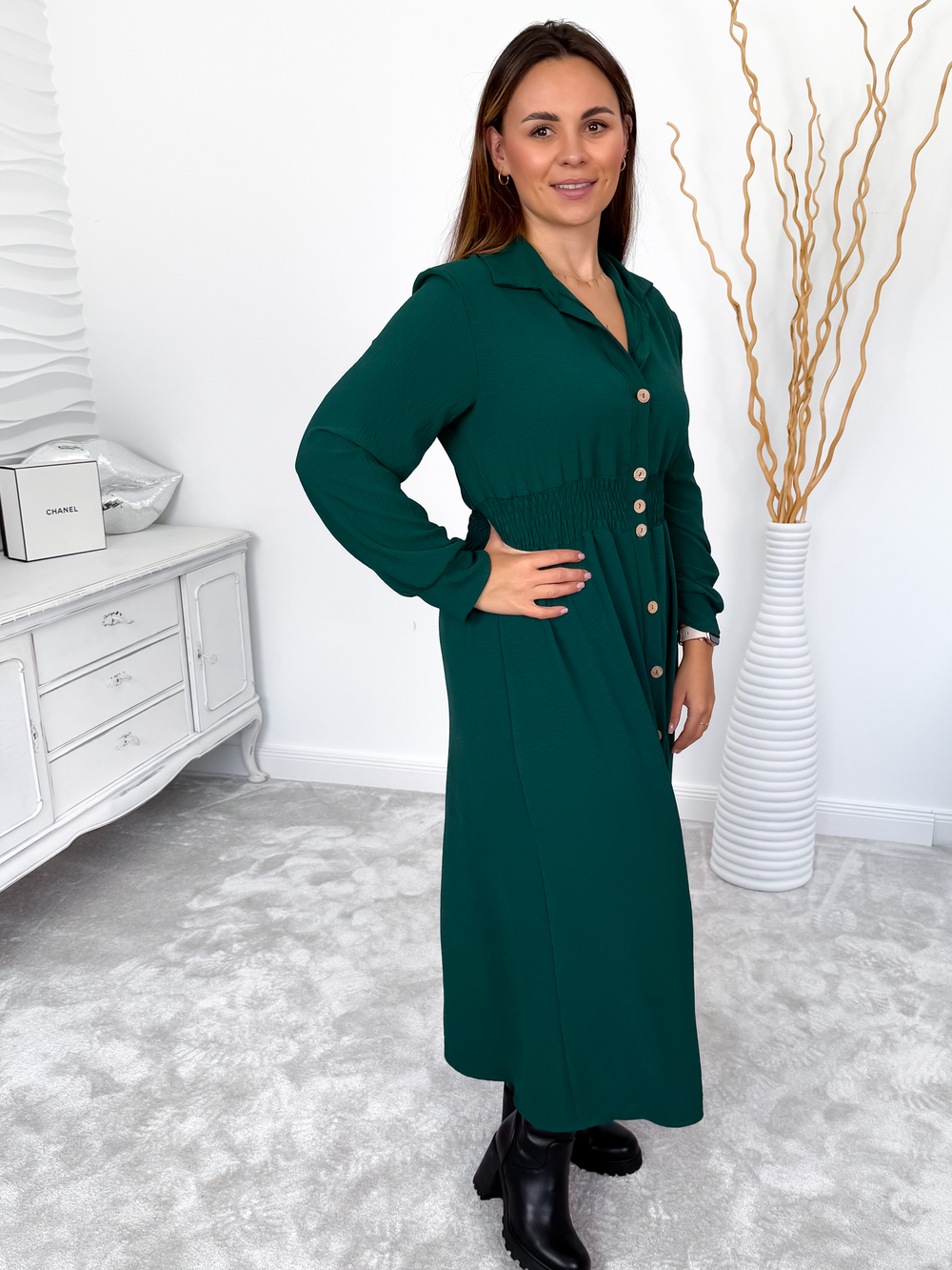 Butelkowa zieleń szmizjerka maxi zapinana na guziki