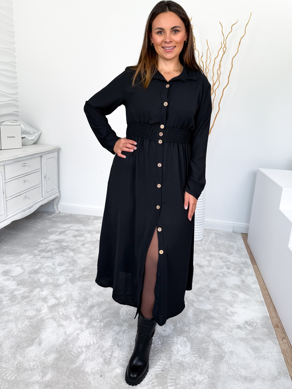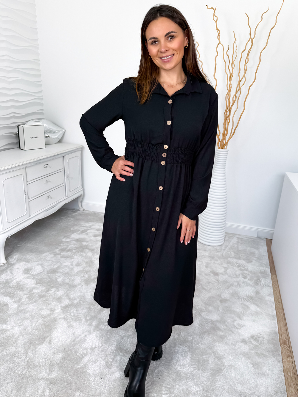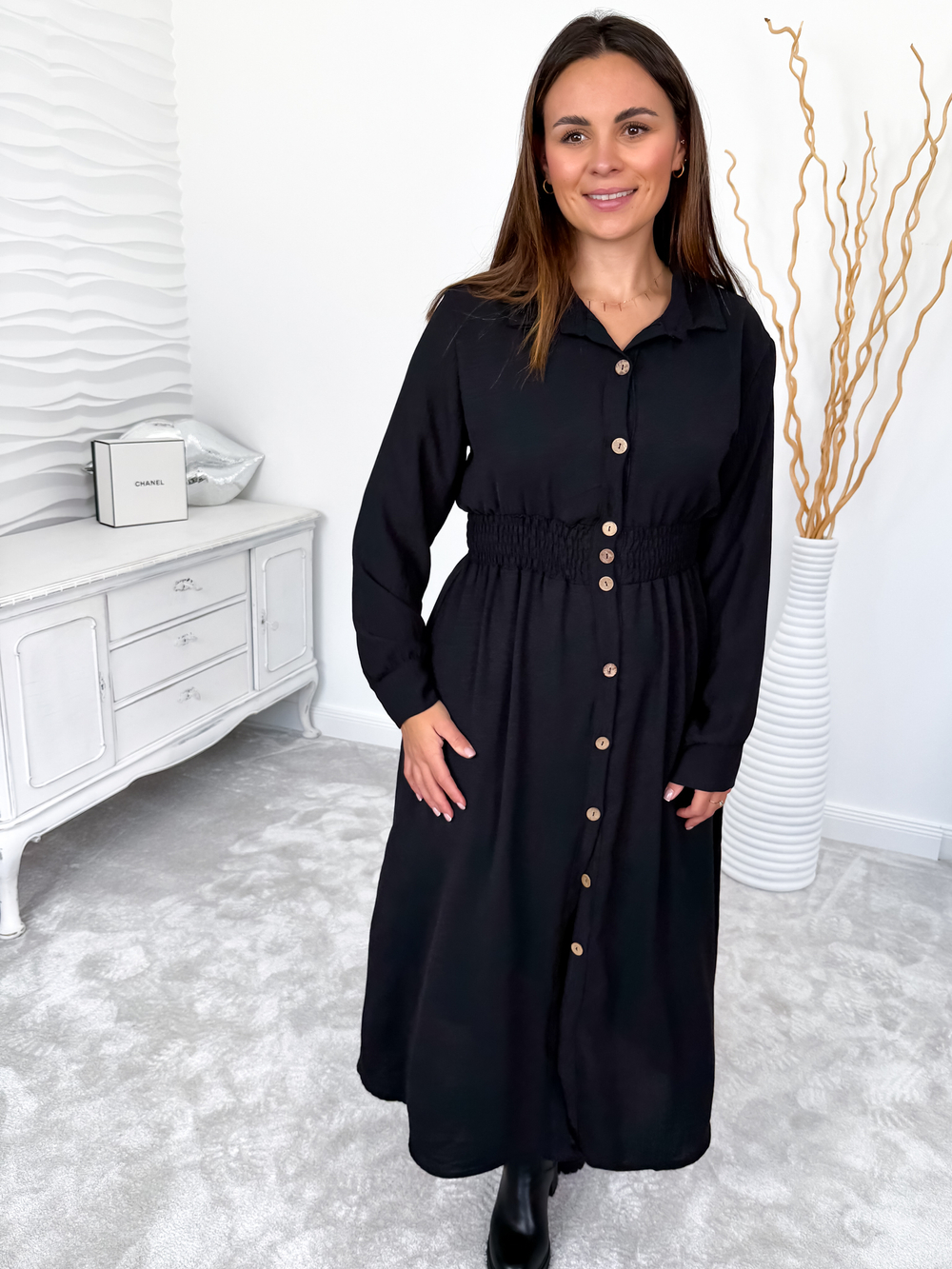 Czarna szmizjerka maxi zapinana na guziki