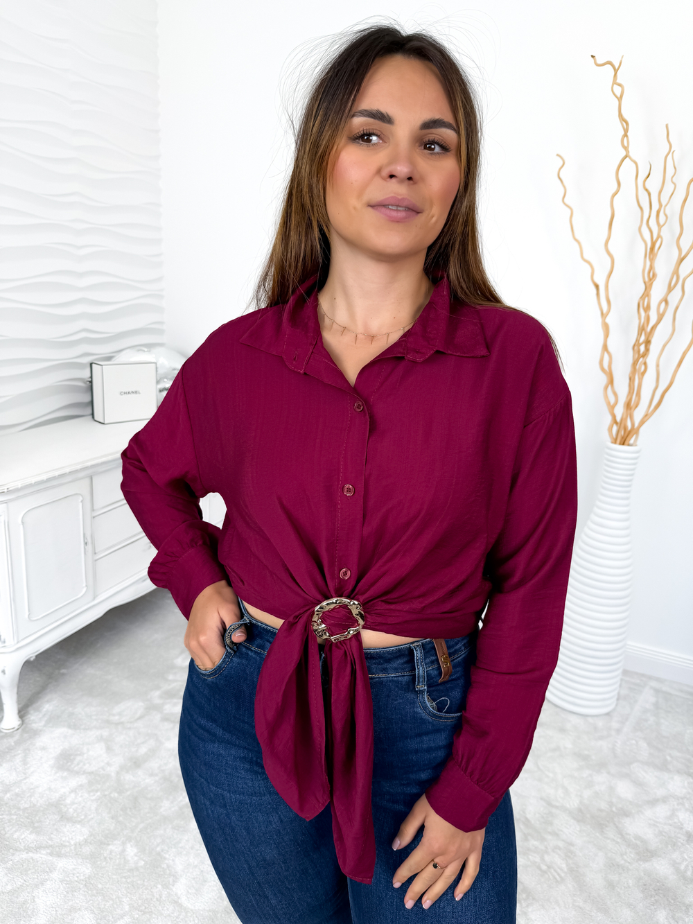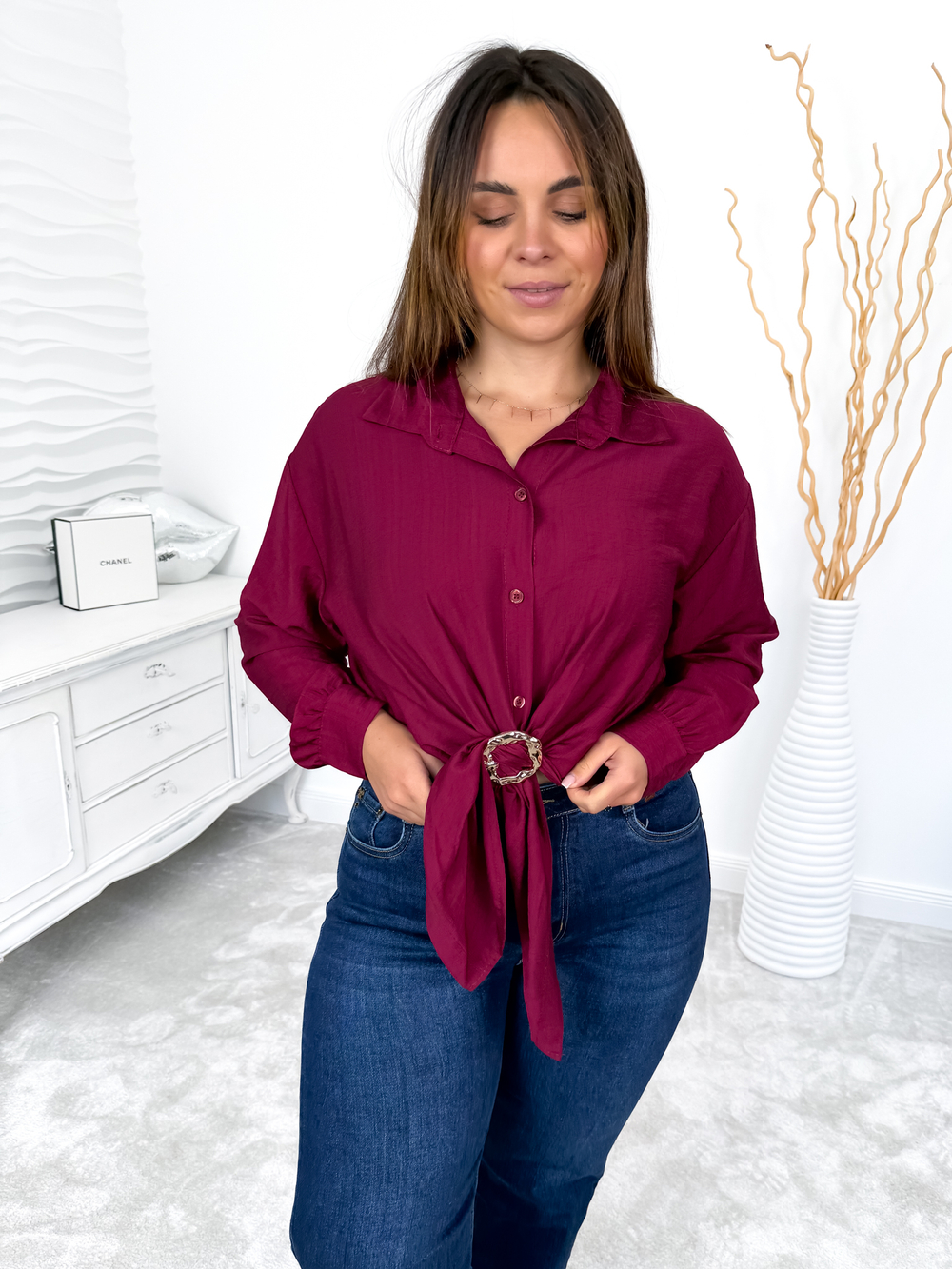 Stylowa koszula z wiązaniem z przodu to połączenie elegancji i nowoczesnego kroju. Regulowane wiązanie pozwala dopasować fason do sylwetki, a klasyczne zapięcie na guziki dodaje jej uniwersalnego charakteru. Dostępna w trzech modnych kolorach.