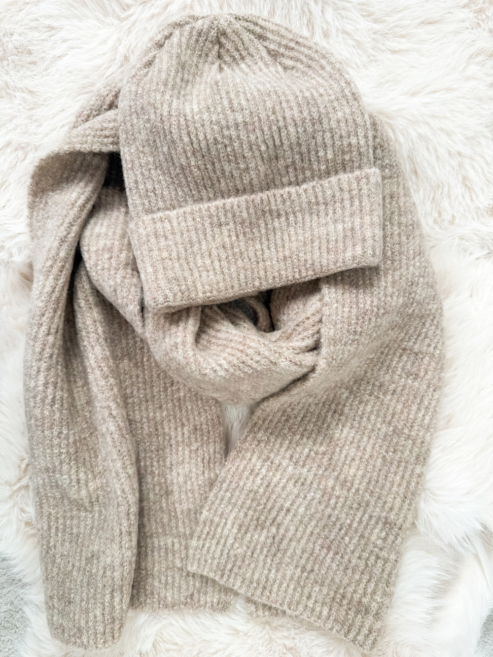 Miękki i ciepły komplet czapka plus długi, szeroki szalik to idealny wybór na chłodne dni. Wykonany z wysokiej jakości materiału z domieszką wełny i moheru. Zapewnia komfort, przytulność i stylowy wygląd.