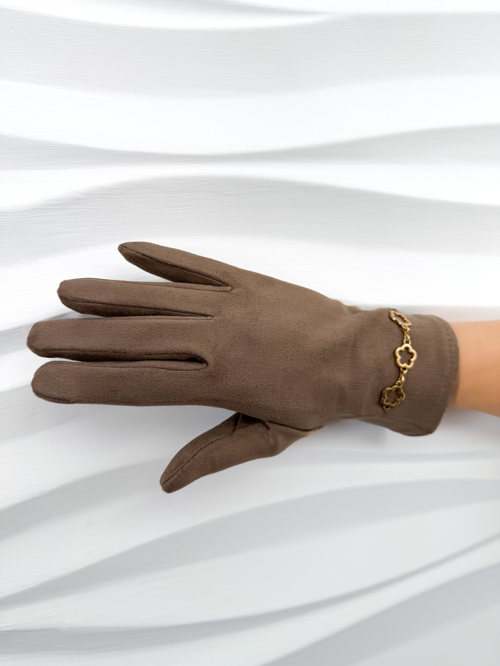 Klasyczne, eleganckie rękawiczki zdobione złotym łańcuszkiem to stylowy dodatek na chłodniejsze dni. Wykonane z miękkiego, przyjemnego w dotyku materiału zapewniają komfort noszenia. Doskonale uzupełnią zarówno codzienne, jak i eleganckie stylizacje.