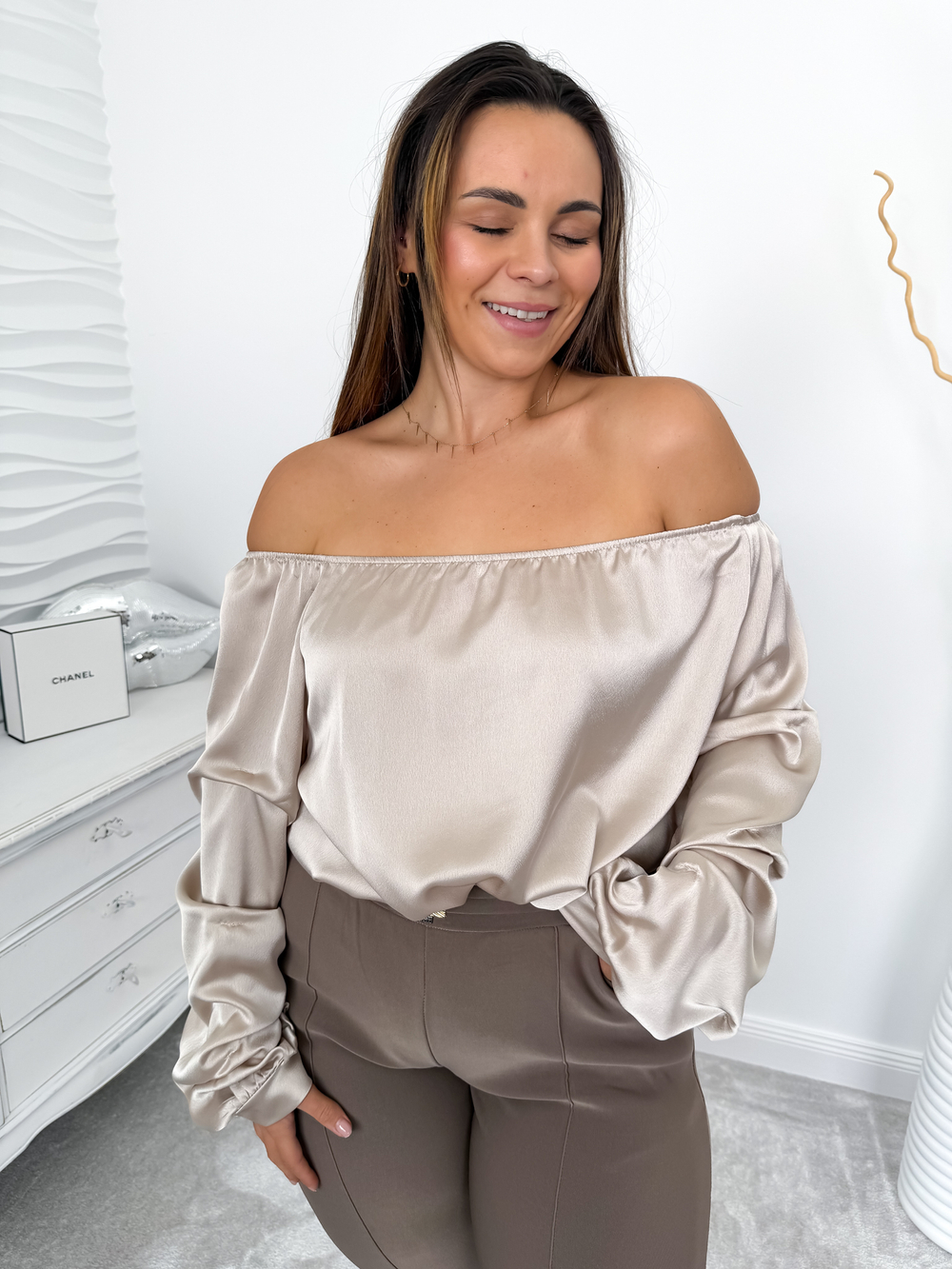 Elegancka satynowa bluzka typu hiszpanka to połączenie kobiecości i subtelnego blasku. Długie, ozdobne rękawy oraz satynowe wykończenie dodają jej wyjątkowego charakteru. Dostępna w kilku stylowych kolorach do wyboru.
