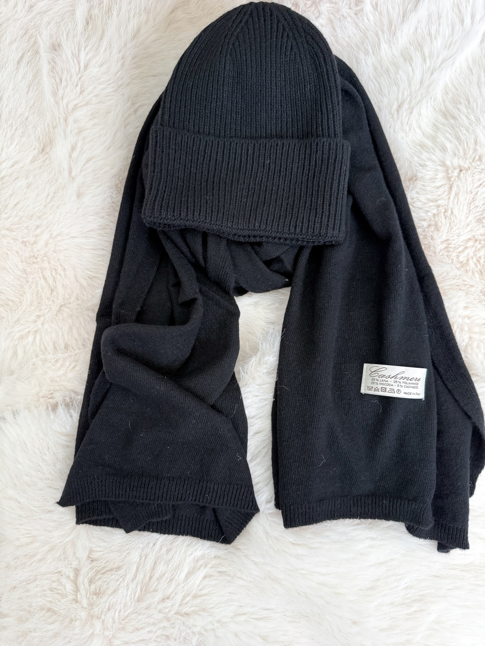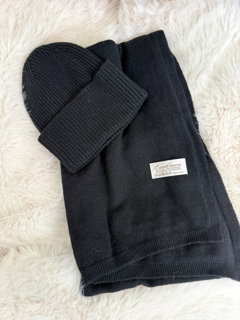 Czarny z kaszmirem i wełną komplet czapka + szalik