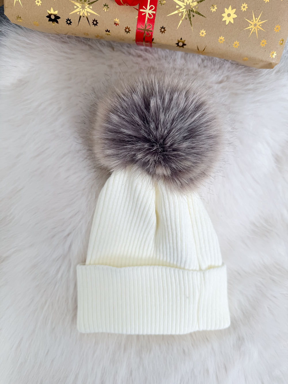 Śmietankowa czapka z futrzanym pomponem