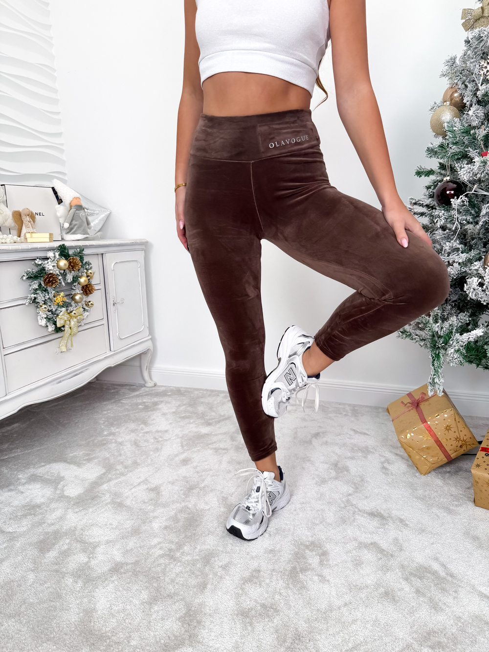 Brązowe welurowe legginsy Ola