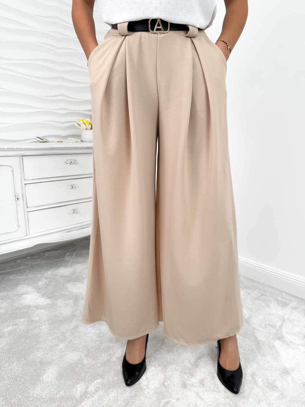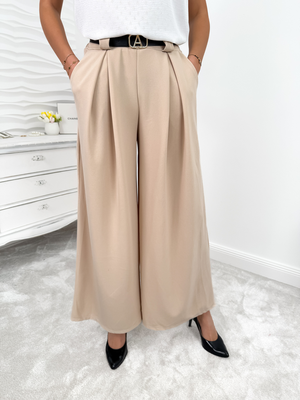 Beżowe szerokie spodnie palazzo z paskiem Paloma