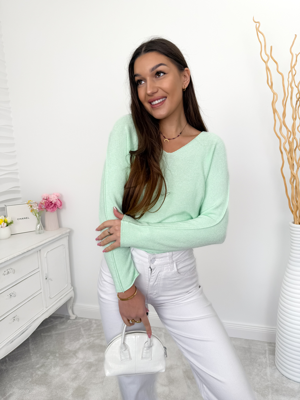 Stylowy sweter z dekoltem w serek to idealny wybór na każdą okazję. Wykonany z miękkiego, przyjemnego w dotyku materiału, zapewnia komfort noszenia przez cały dzień. Modne widoczne szwy dodają charakteru, a długi rękaw sprawia, że świetnie sprawdzi się w chłodniejsze dni. Doskonały do codziennych stylizacji, jak i eleganckich zestawów.