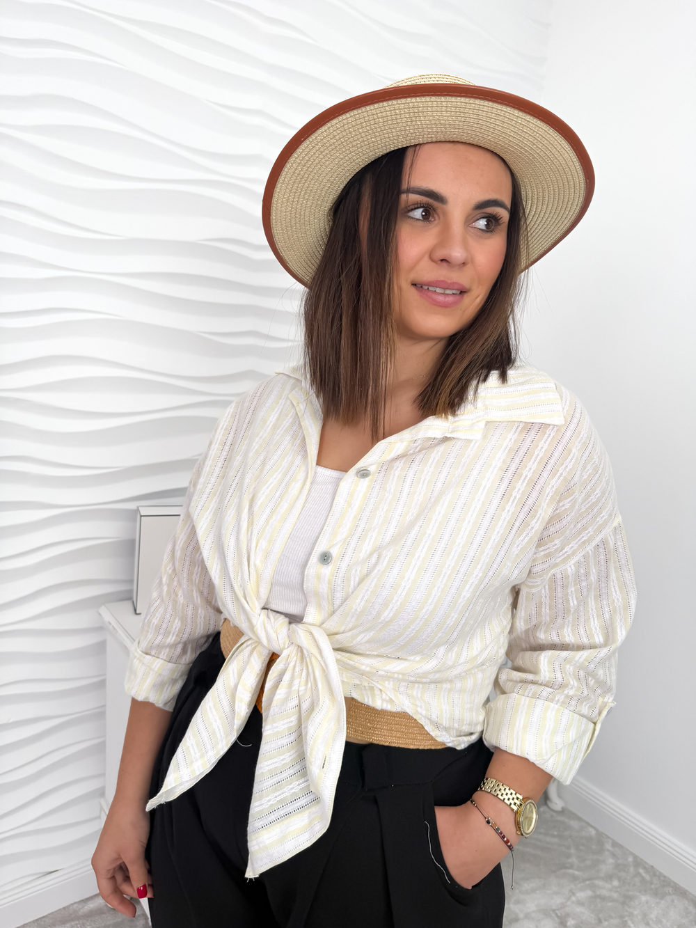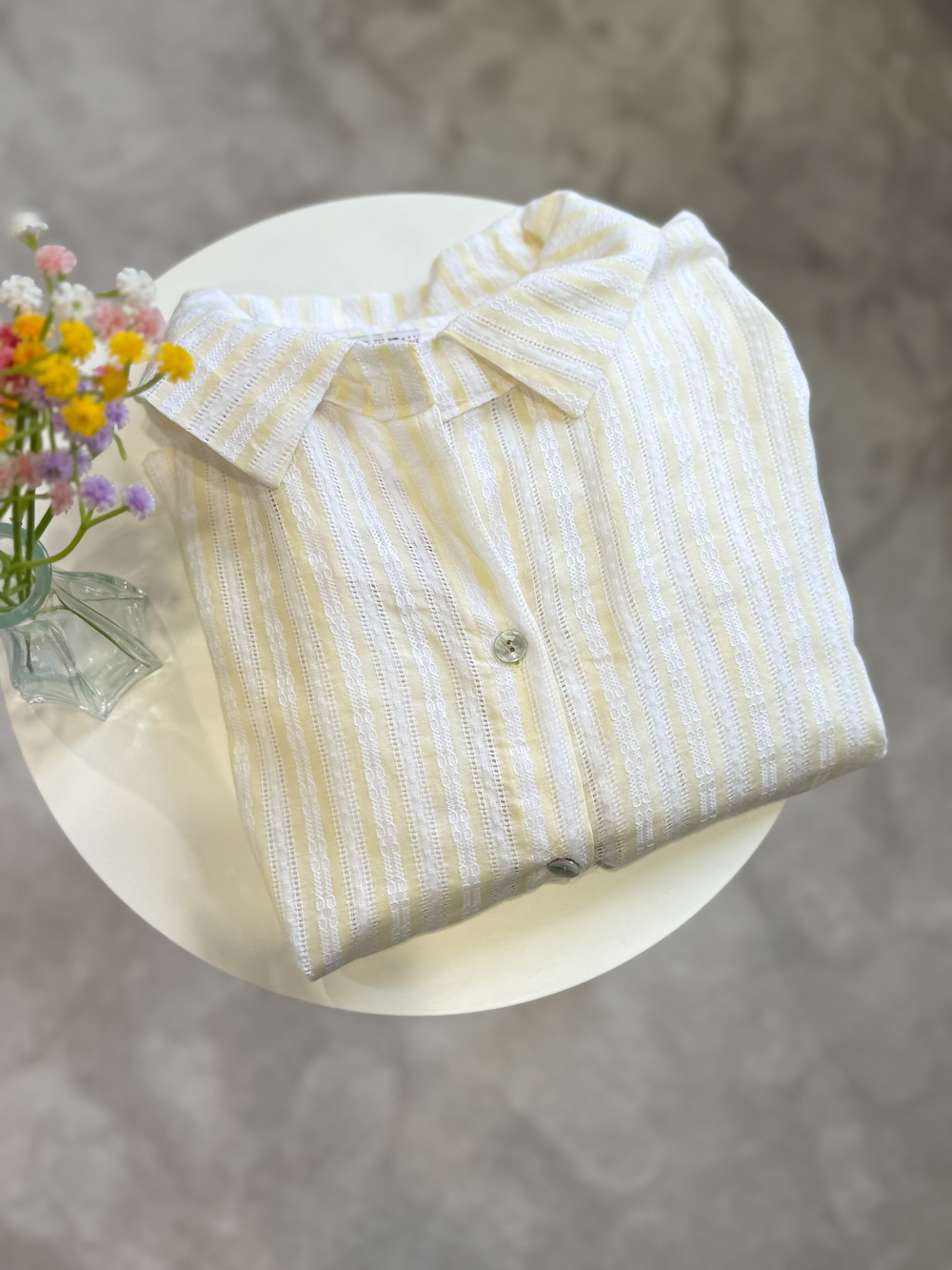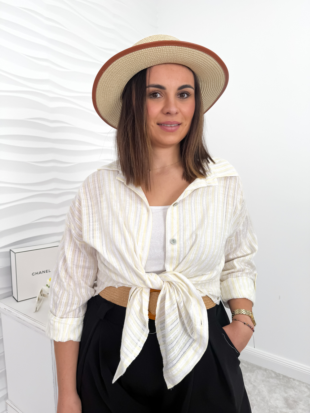Piękna koszula w paski wykonana z bawełny z delikatnym ażurowym wykończeniem. Posiada rękawy 3/4 z możliwością podpięcia, co dodaje jej funkcjonalności. Włoska produkcja gwarantuje wysoką jakość i ponadczasowy styl.