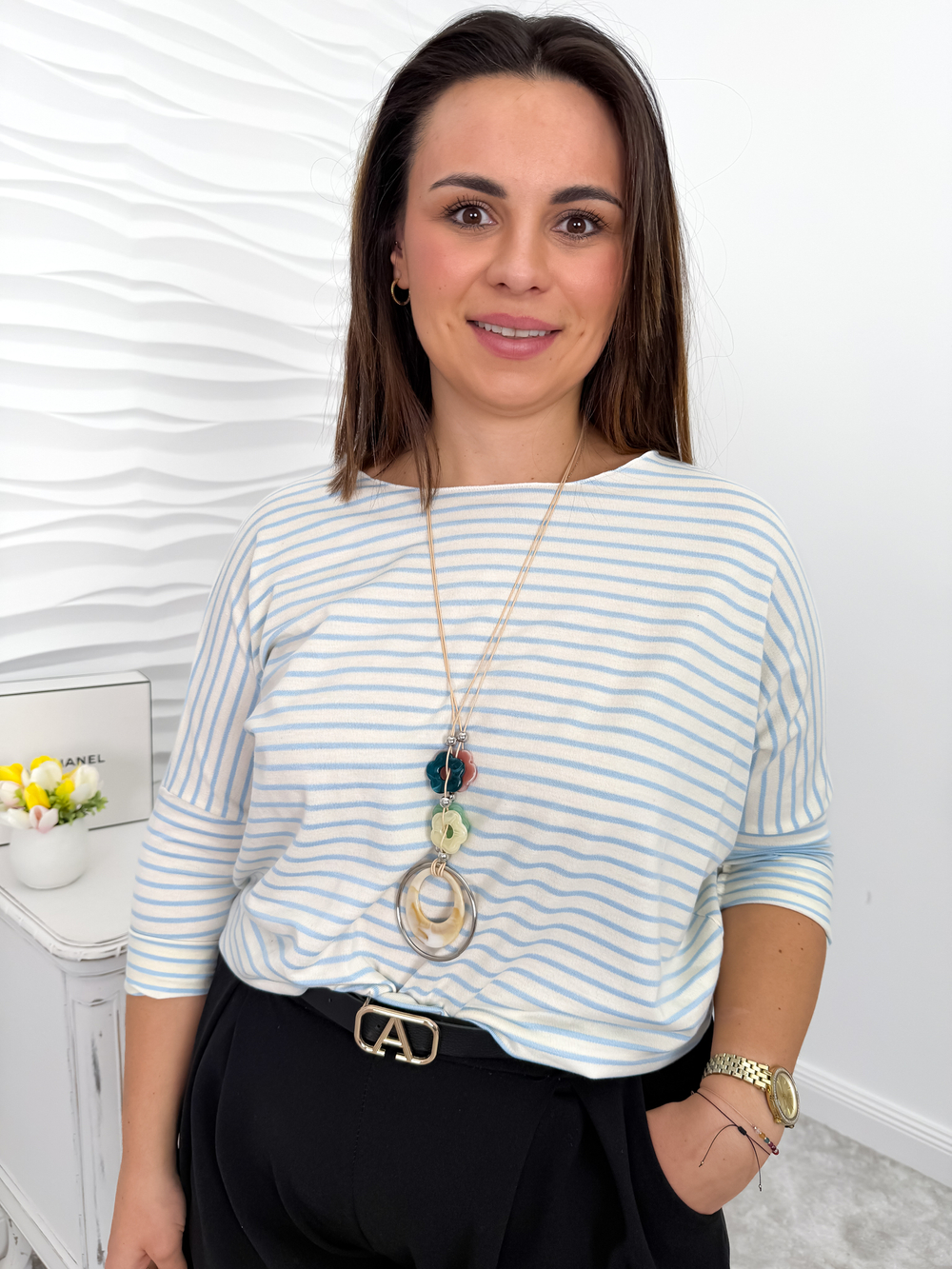 Błękitna bluzka sweterkowa w paski Alexis