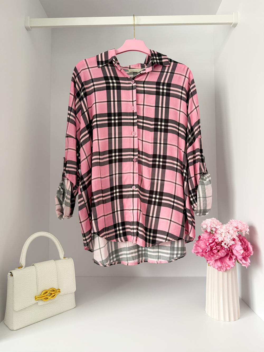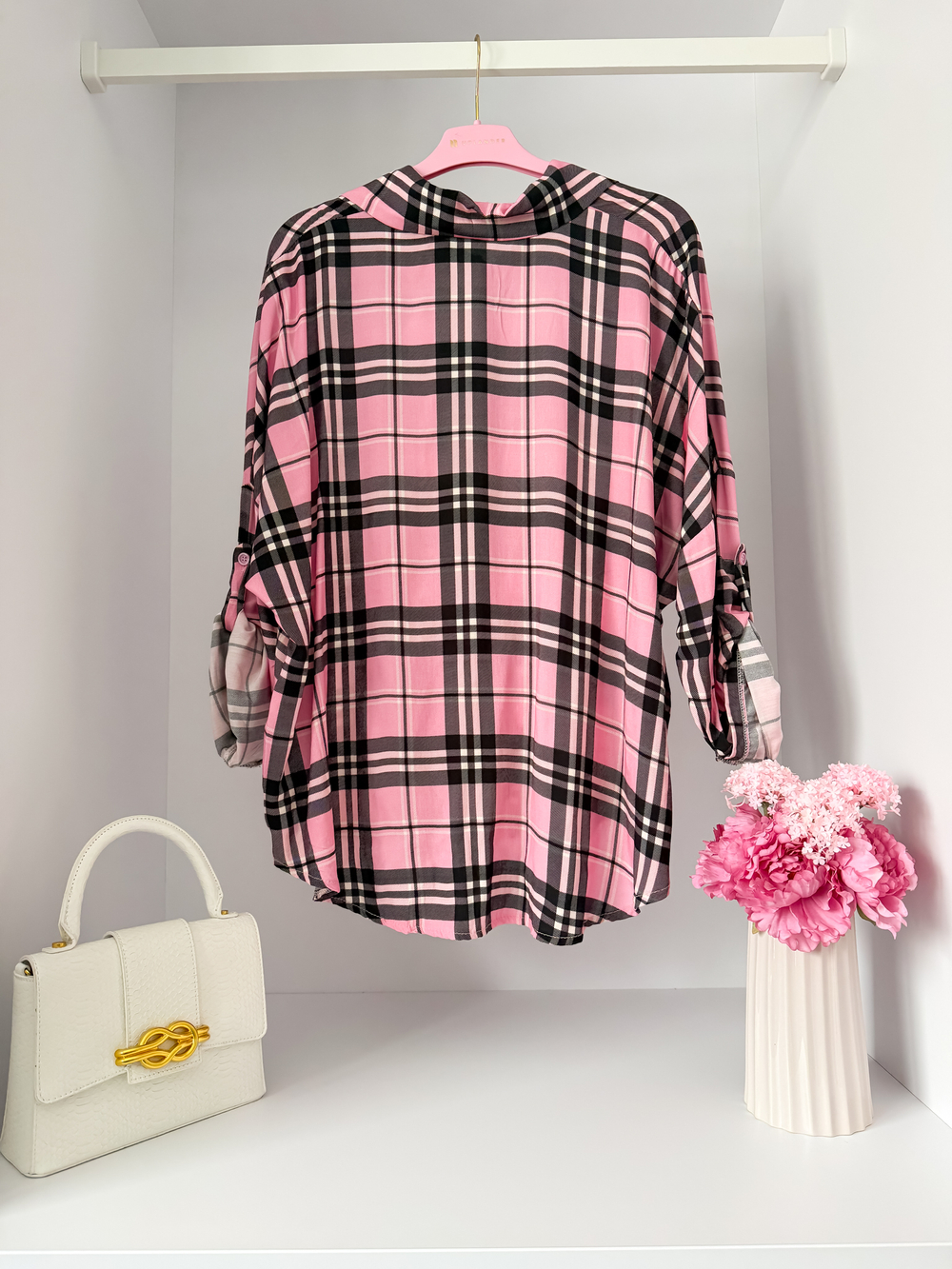 Różowa koszula w kratkę